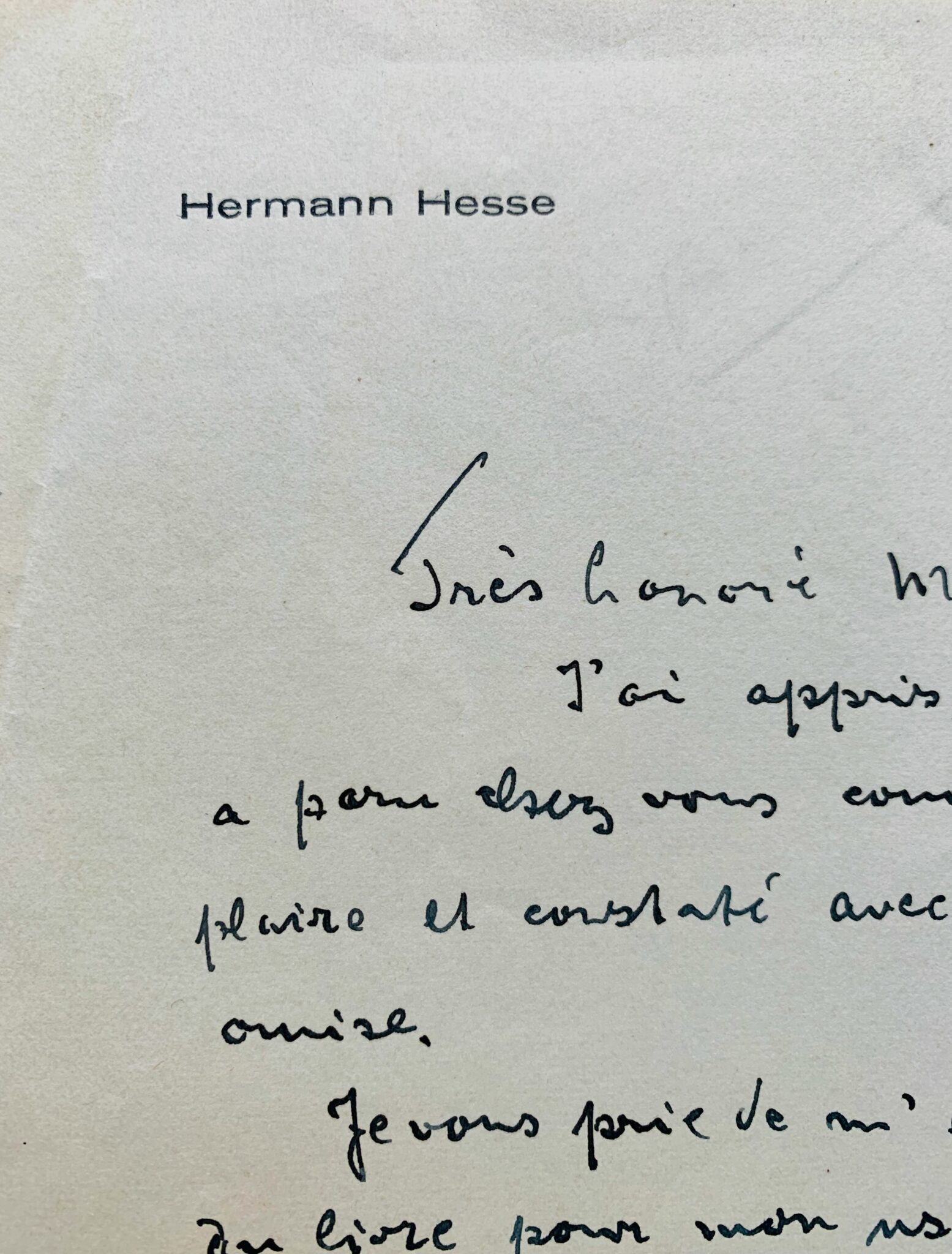 Hermann Hesse (Calw, 1877/1962)Lettre d'Hermann Hesse à son éditeur français, au sujet de la traduction de son roman philosophique Siddhartha. Il regrette que la dédicace à Romain Rolland ait été omise.