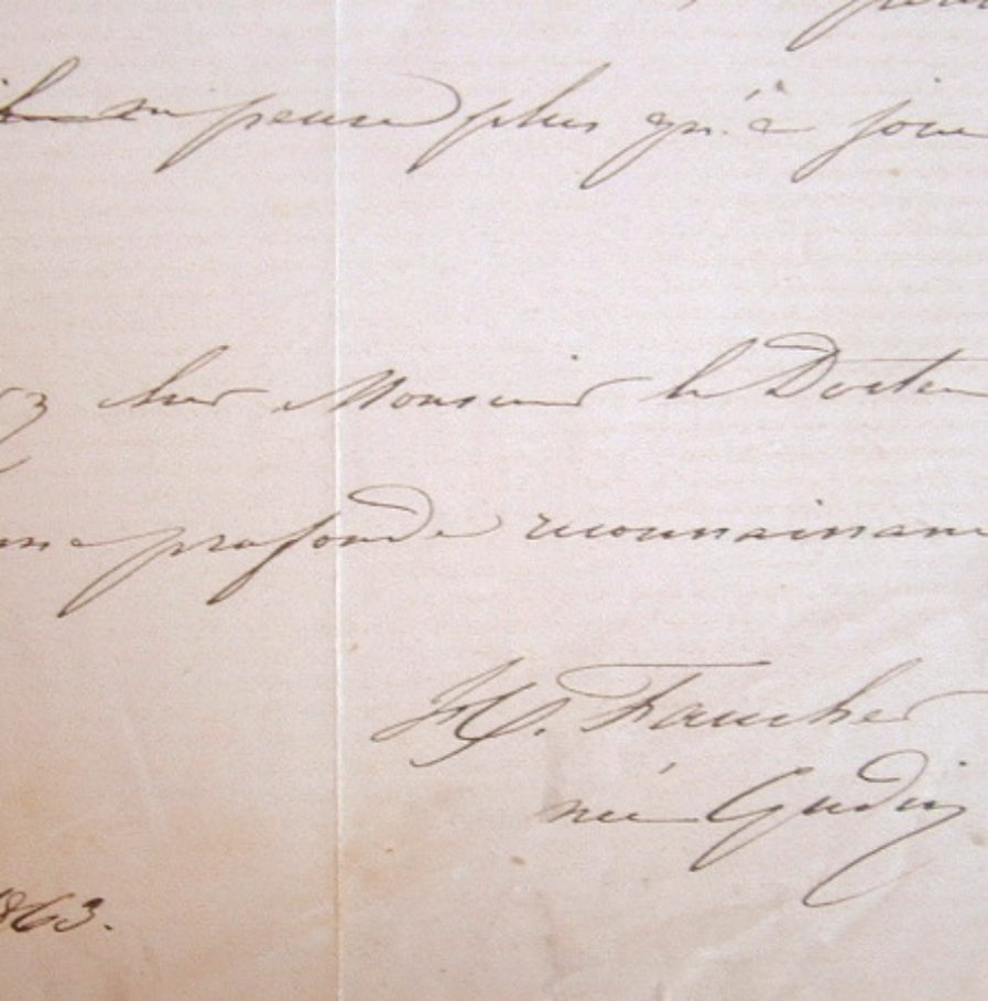 Pour remercier son médecin, qui vient de soigner son fils, elle lui offre un tableau. Signée H. Faucher, née Gudin.