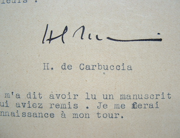 «Mes collaborateurs ont publié sous forme d'échos l'intéressant article que vous nous aviez adressé. Je tenais à vous en informer, en m'en excusant, mais nous n'avions malheureusement pas de place pour l'article. Comme celui-ci nous a été transmis par une agence, je désirerais connaître le montant des droits d'auteur». Il évoque un manuscrit qu'il avait remis à Augagneur. «Je me ferai un plaisir d'en prendre connaissance à mon tour».