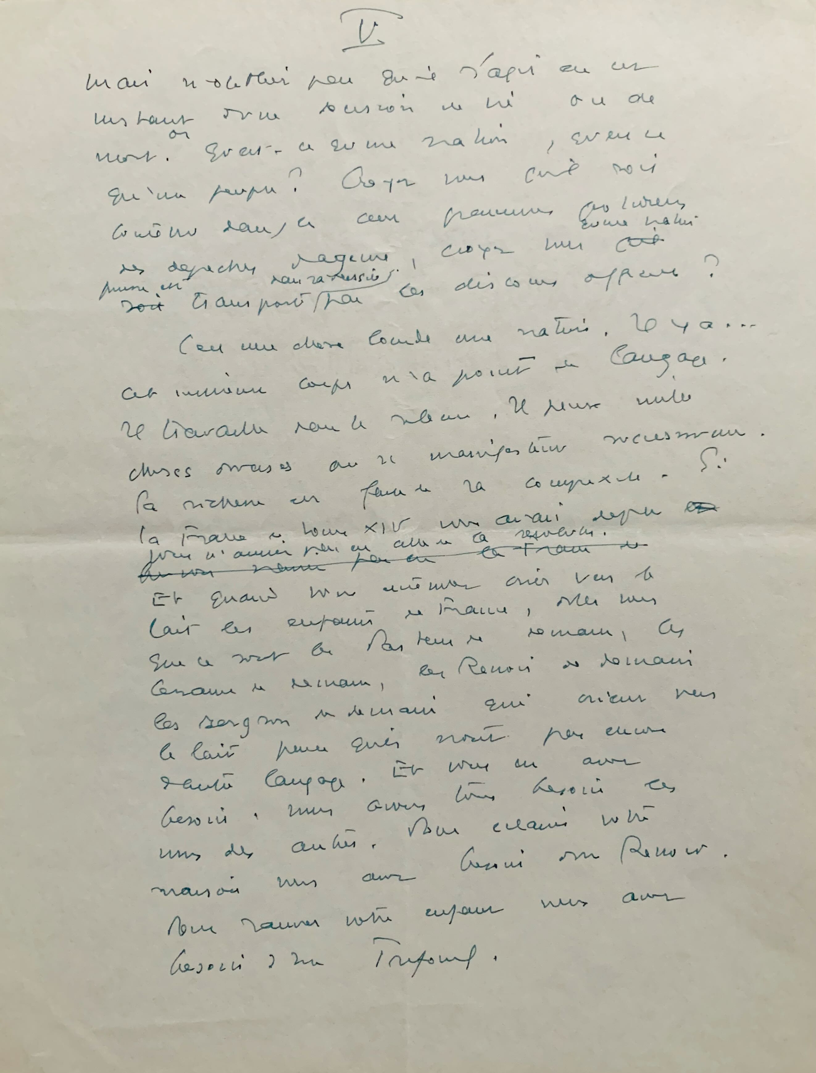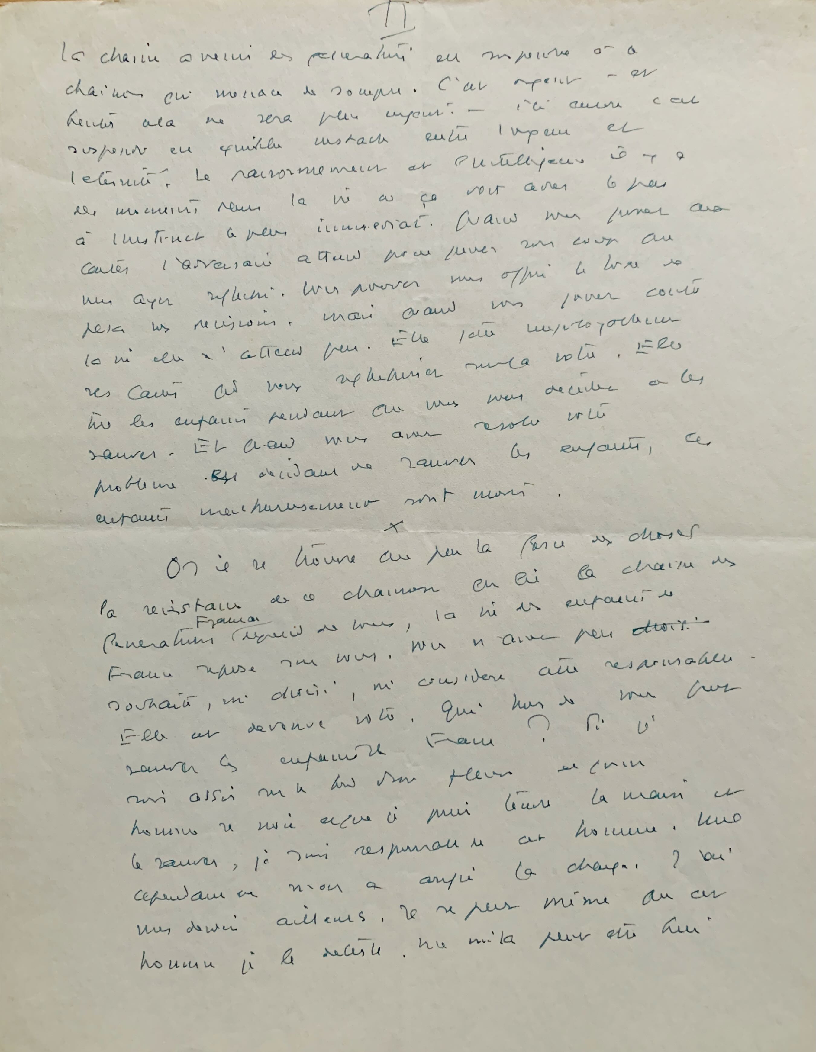 Important manuscrit d'Antoine de Saint-Exupéry, écrit durant la guerre, et qui semble inédit : il s'agit d'un texte patriotique destiné à "ceux qui luttent contre l'Allemagne", afin de les pousser à agir rapidement, en particulier vis-à-vis des enfants de France.