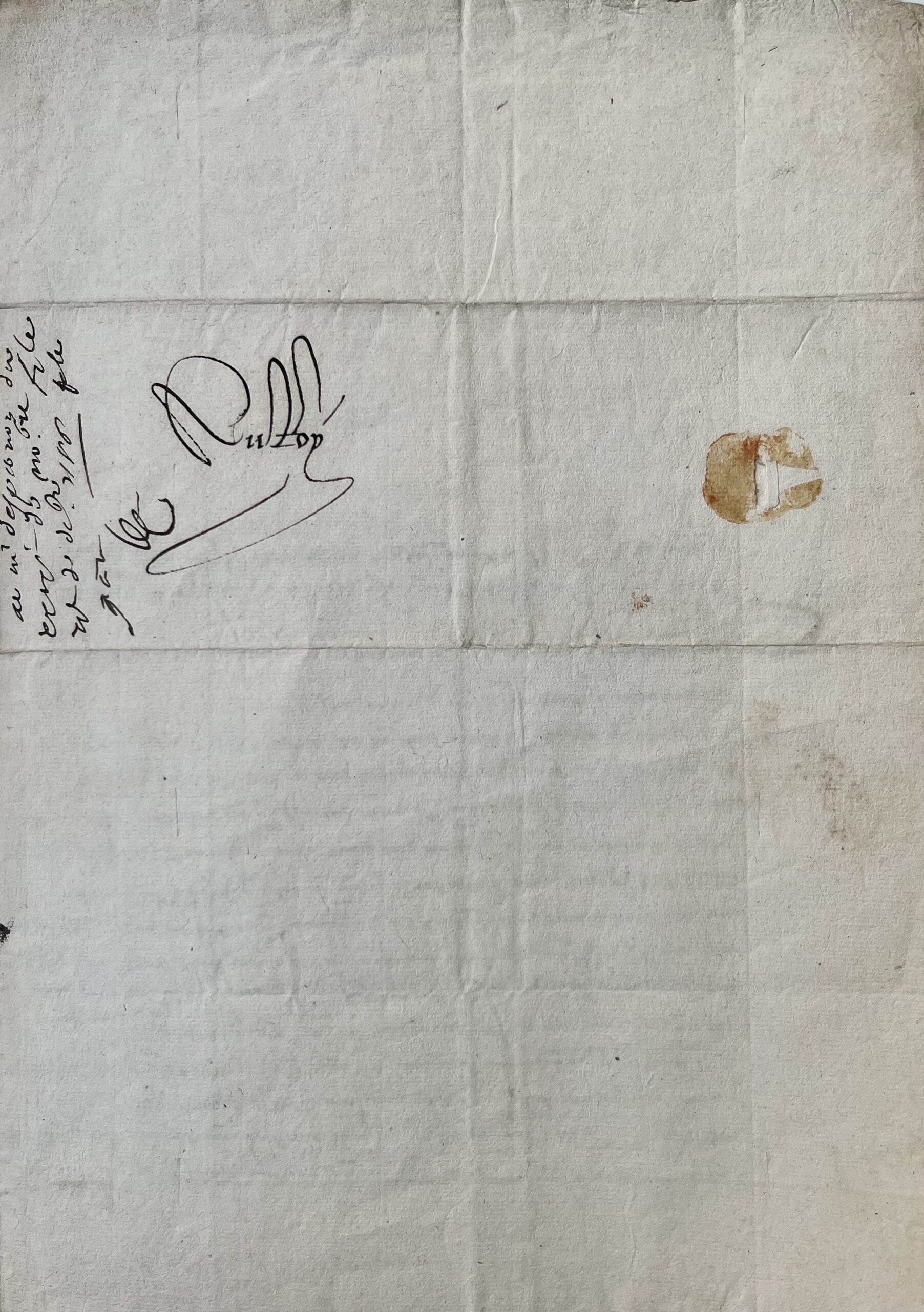 Encre brune sur feuillet double. Adresse au verso du second feuillet "Au Roy".