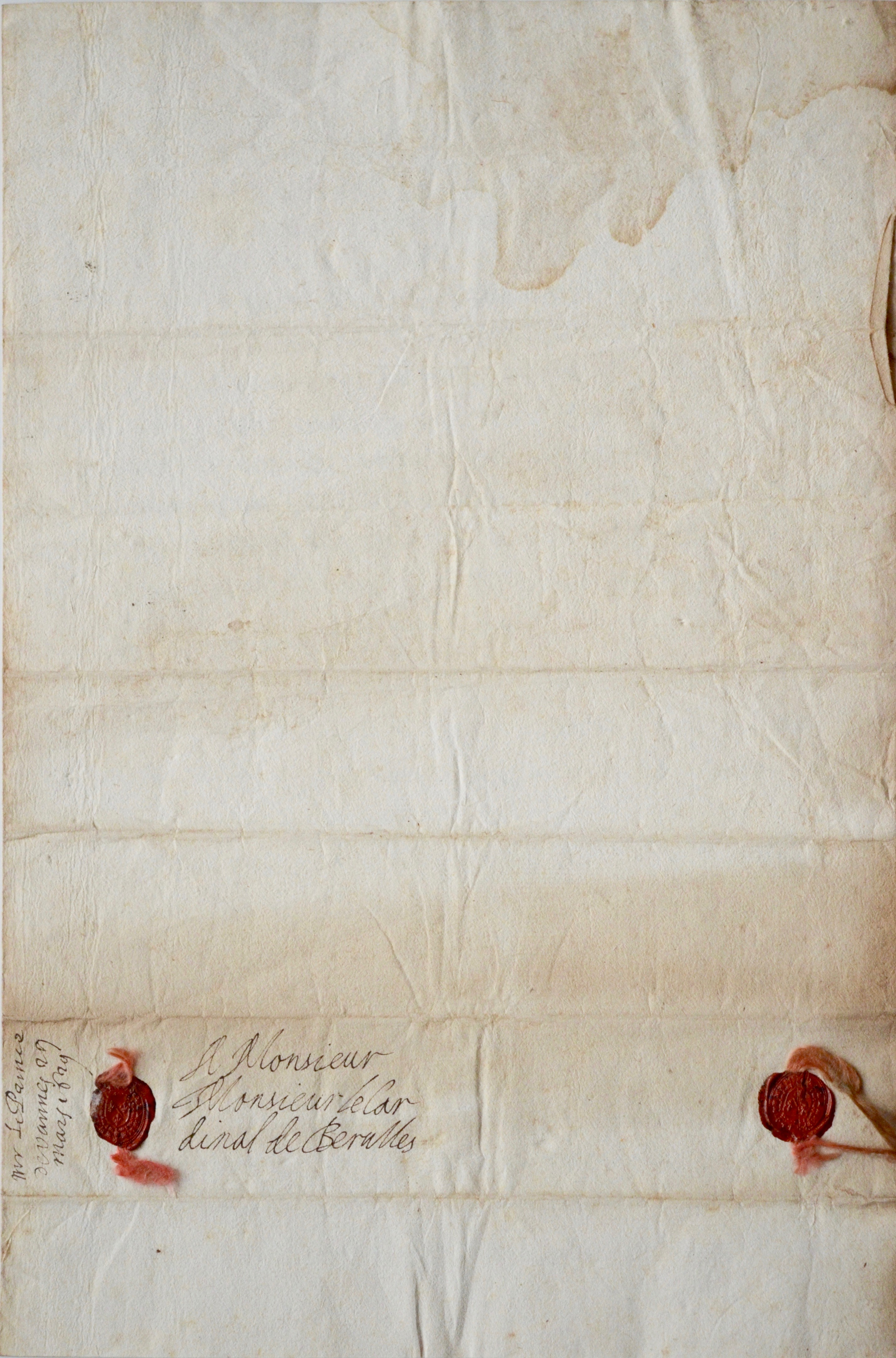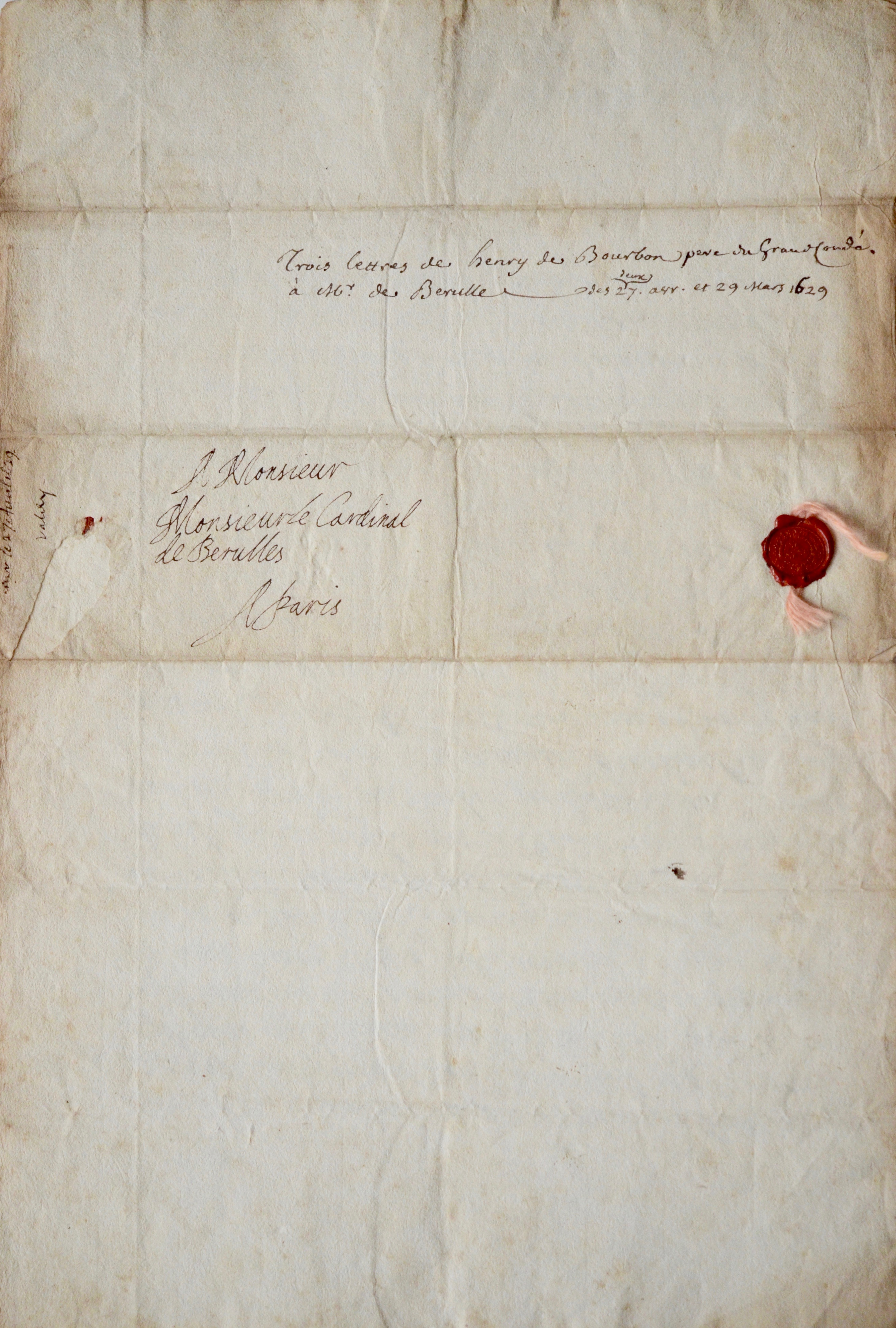 Pierre de Berulles (1575-1629) fut ordonné cardinal en 1627. Il était également chef du Conseil de la Reine Mère, Marie de Médicis. Il mourut six mois après avoir reçu ces lettres, pendant la célébration d'une messe.