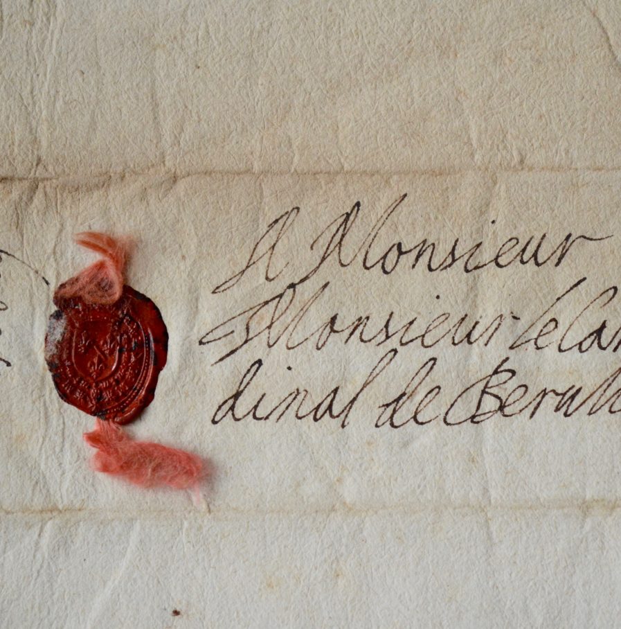 Pierre de Berulles (1575-1629) fut ordonné cardinal en 1627. Il était également chef du Conseil de la Reine Mère, Marie de Médicis. Il mourut six mois après avoir reçu ces lettres, pendant la célébration d'une messe.