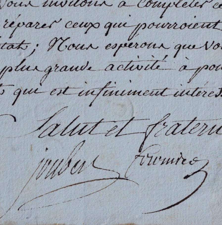 Signature de Pierre-Mathieu Joubert (1748-1815), ancien évêque constitutionnel, membre de l'Administration centrale du département de la Seine avant d'en devenir président.