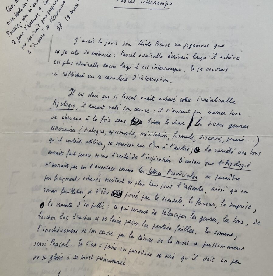 Manuscrit d’un article de Jean Guitton sur les « Pensées » de Pascal