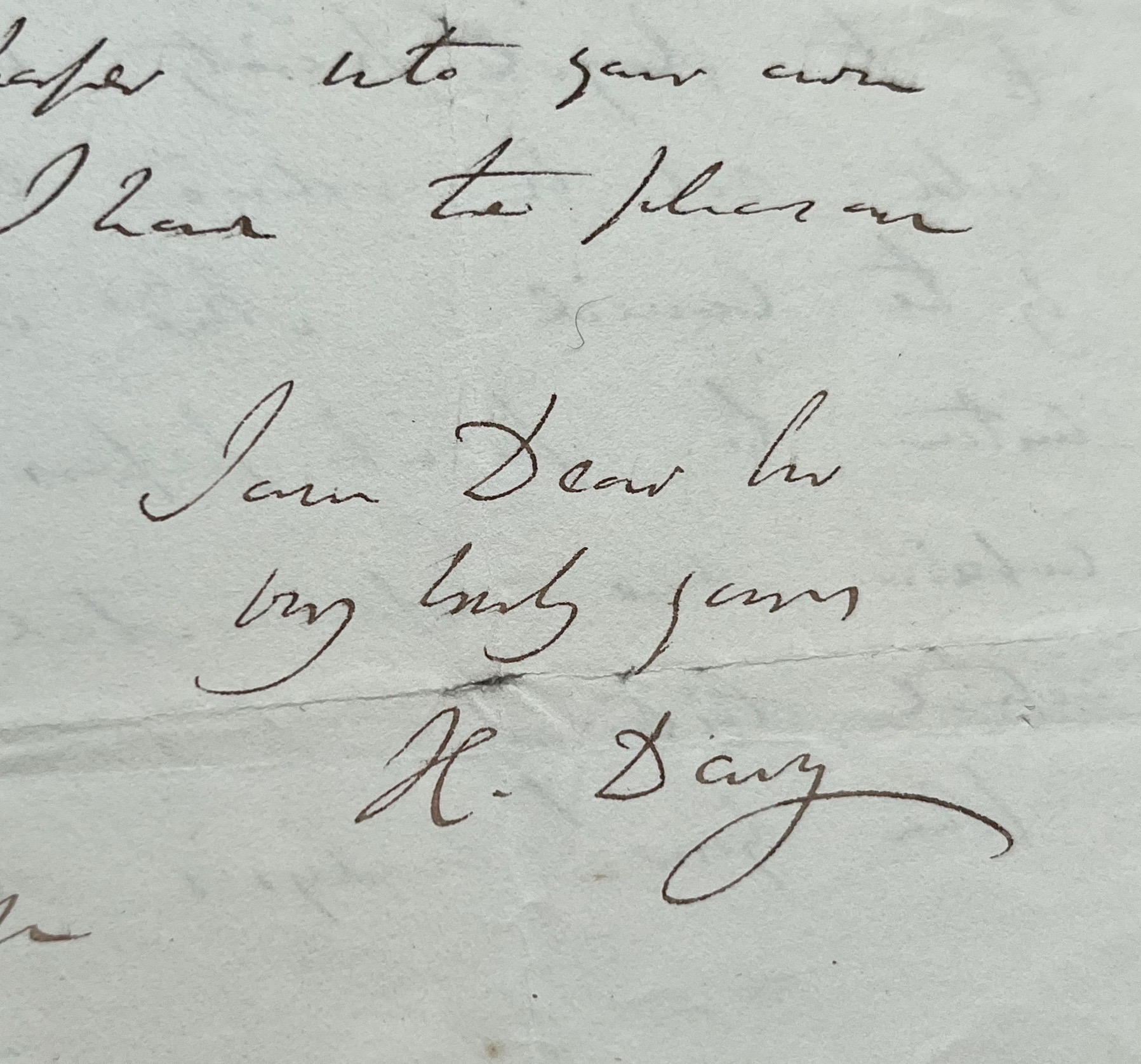 Intéressante lettre scientifique de Humphry Davy au chimiste anglais Samuel Parkes