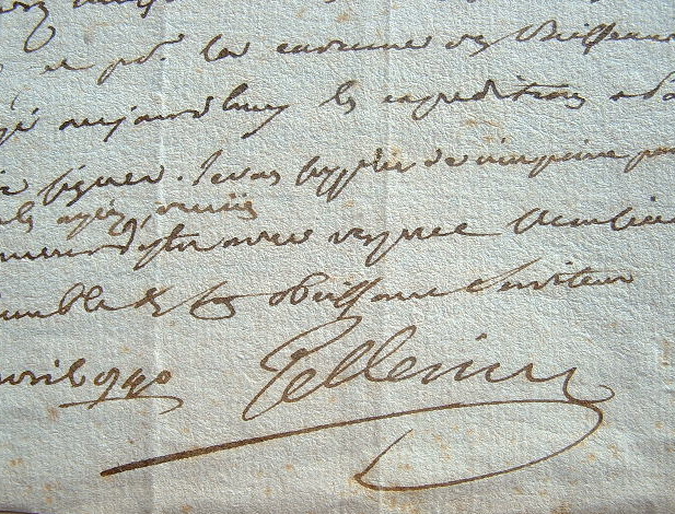 Joseph Pellerin (Marly-le-Roi, 1684/1782)Joseph Pellerin, alors premier commis de la Marine, intervient auprès du ministre de la Marine Maurepas au sujet du commerce du Chanvre. «Je rendray compte demain, monsieur, de la lettre que vous m'avez fait l'honneur de m'écrire le 15 de ce mois, et je ne doute pas que M. le Cte de Maurepas ne consente à écrire à M. de Viarmes [l'intendant de Bretagne] comme vous le proposez au sujet des achats de chanvre». Il évoque ensuite la situation de son fils. «J'aurais souhaité pouvoir laisser mon fils plus longtemps à Brest pour travailler et s'instruire sous vos ordres, mais le besoin que j'en ay m'oblige à le faire revenir, et j'ay demandé un congé pour luy à cet effet. Je souhaite fort qu'il vous ait donné lieu d'estre content de sa conduite et de son application et je vous rends grâce des bontés que vous avez eues pour luy [...]». Après son intervention, une ordonnance a été rendue par M. de Viarmes, ce qui le satisfait pleinement ; il lui adressera des ordres en conséquence.