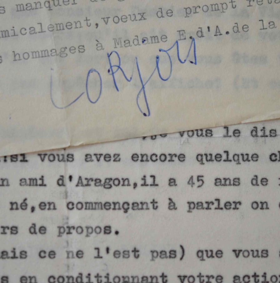 Bernard Lorjou (Blois, 1908/1986)Amusante lettre de Lorjou à Emmanuel D'Astier de La Vigerie, sur son travail d'illustrateur pour son journal. Il envoie son collaborateur Bernard Lys lui apporter ses derniers dessins. "Il est chargé d'en veiller l'exécution suivant mes instructions formelles et suivra le travail au journal, mise en page, texte, etc. ; rien ne devant être fait sans son accord : vos services m'ayant déjà couillonné plusieurs fois (publicité, légende, négligence, etc.). Toutes choses étant donné l'importance - Fric - pour le journal (raison gravure et parution des 12 dessins ensuite en un ouvrage) et - Réputation pour ma Pomme, encore plus important, que je ne peux désormais laisser livrée à des journalistes, gens qui travaillent pour le quart d'heure suivant, tandis que nous travaillons pour la "POSTERITE", engageant notre honneur et conscience d'artiste bien au delà de notre vie, et devant ainsi veiller à ce qu'en 2960 les successeurs des ci-dessus n'écrivent pas dans leurs canards : "Le Maître (toutefois) bâclait le travail ; laissons ça à notre ami Picasso qui ne va pas manquer de graver sur gorgonzola [...]".