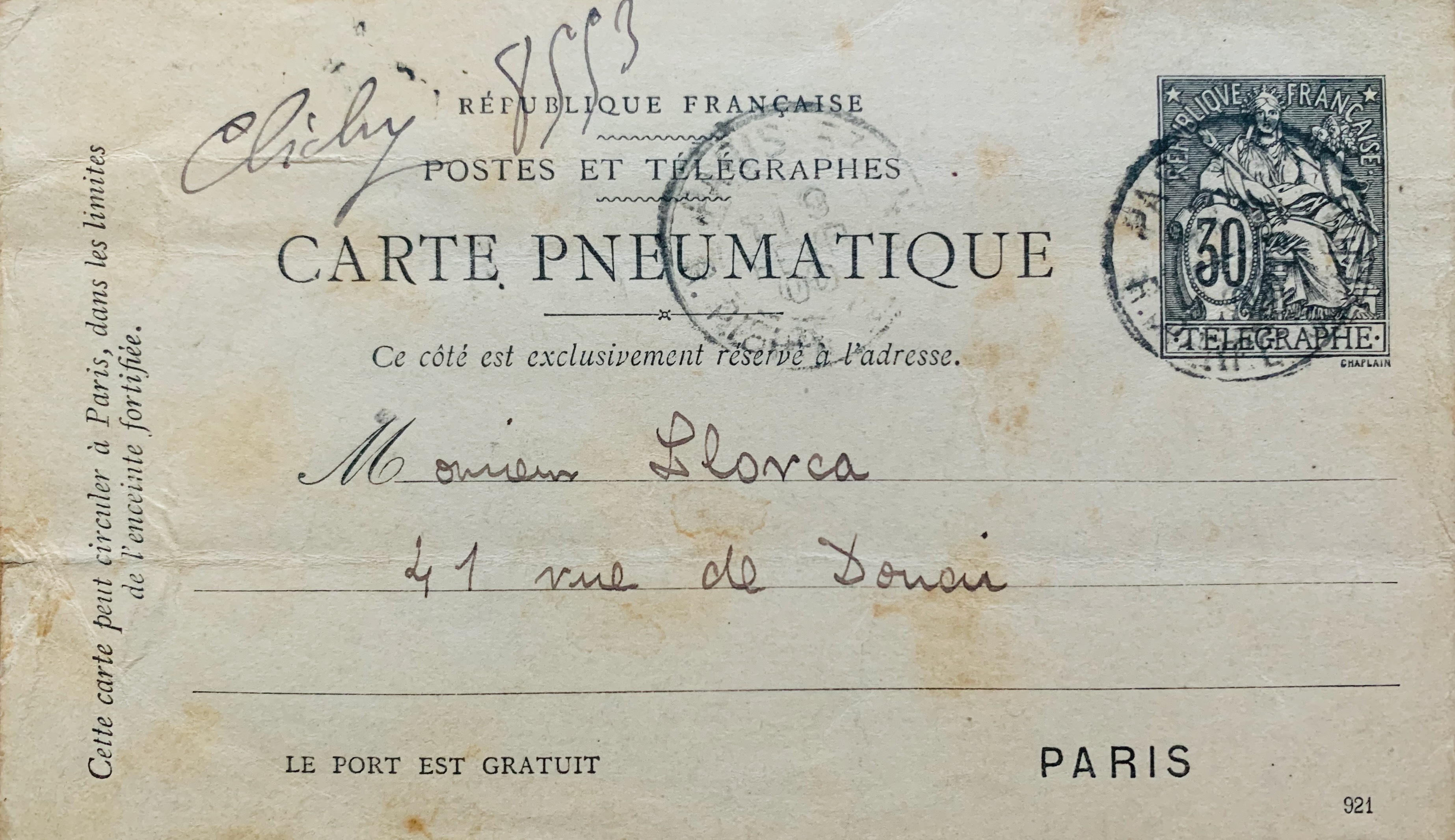 Isaac Albéniz (Camprodon, 1860/1909)Charmante lettre d'Isaac Albeniz à son ami Llorca, écrite lors d'un séjour à Paris.