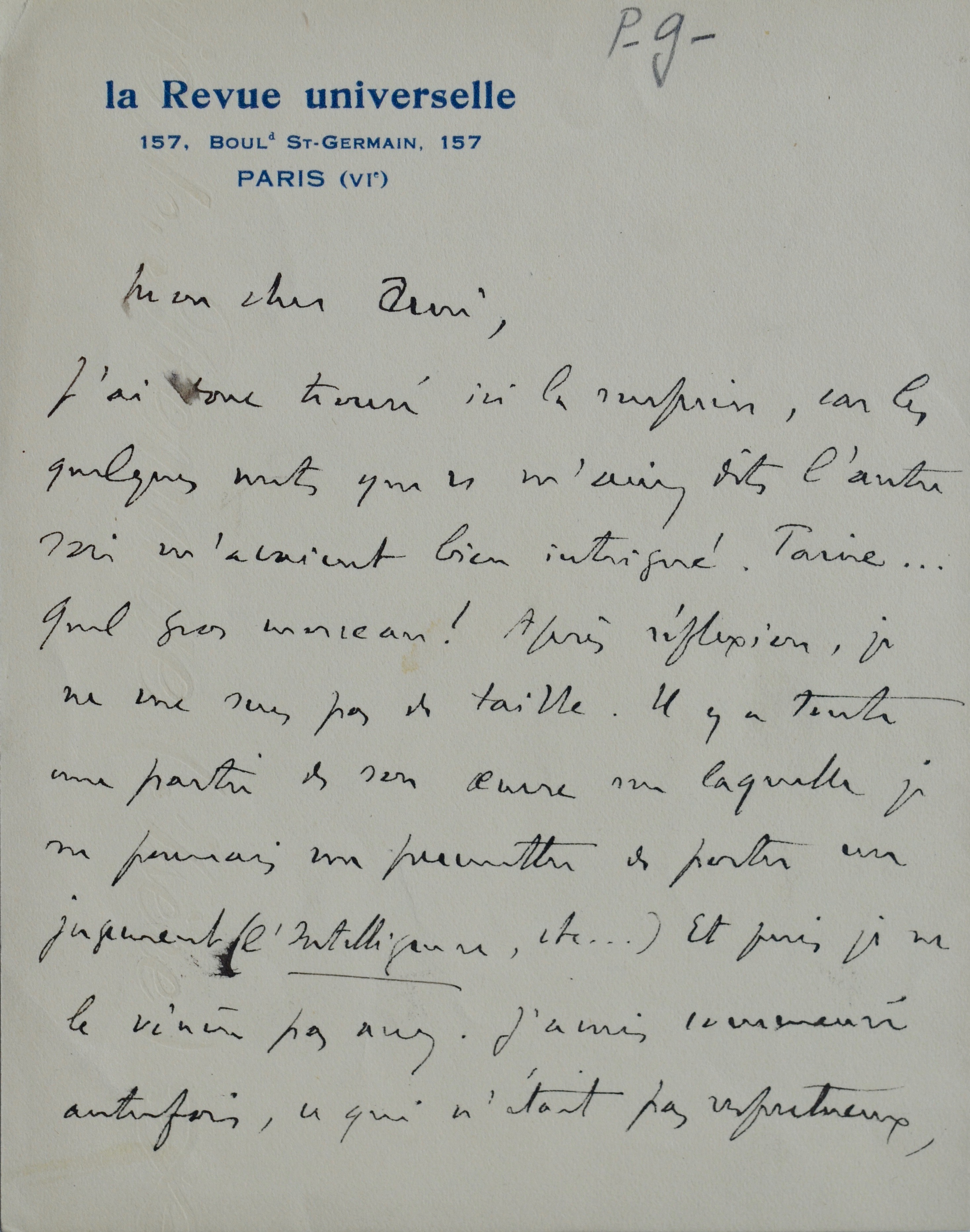 En-tête imprimé de La Revue universelle.