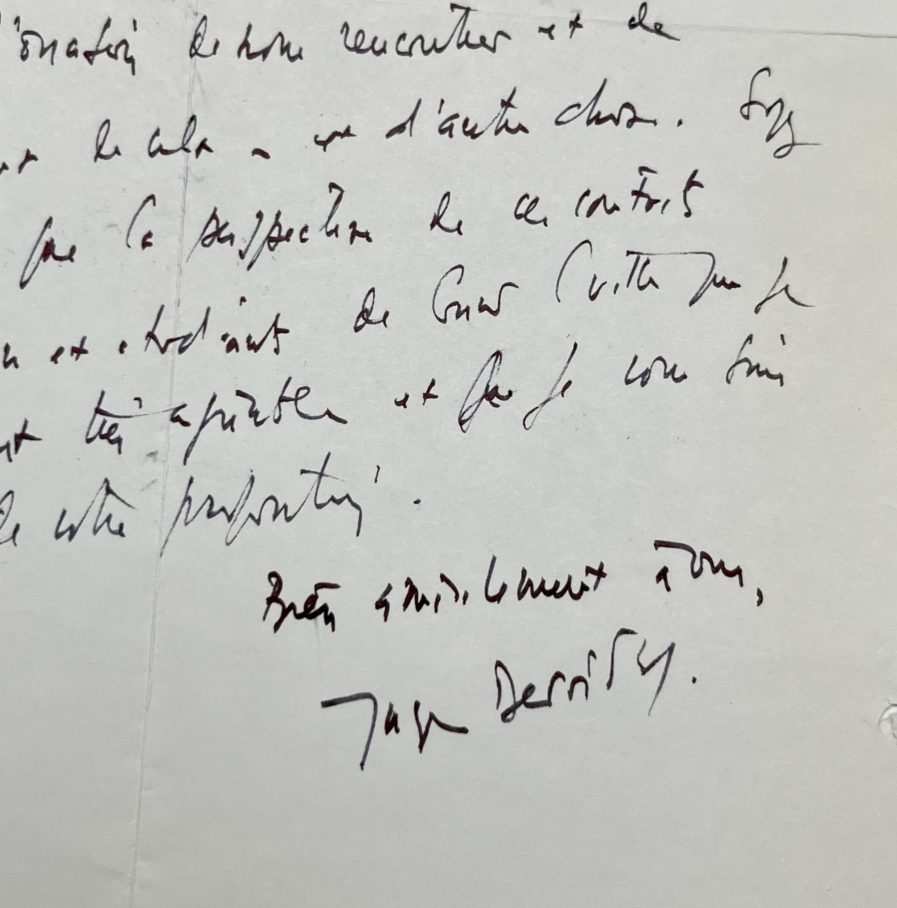Rare lettre de Jacques Derrida.