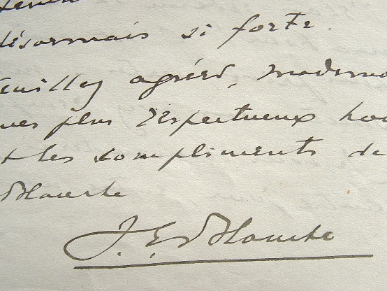 Jacques-Emile Blanche donne les raisons de son absence au Salon. «J'étais retenu dans ma tour ! C'est moi qui fut le plus privé, certes, mais quel succès vous avez remporté ! Je vous demanderai, quelque autre jour, entre nous, de me dédommager... Quant à moi, je voudrais que vous acceptiez comme souvenir de cette belle matinée là, un petit témoignage de ma main [...]». La lettre est accompagnée d'une enveloppe sur laquelle Germaine Letellier a précisé : «Lettre de Jacques Emile Blanche lorsque j'ai chanté chez lui».