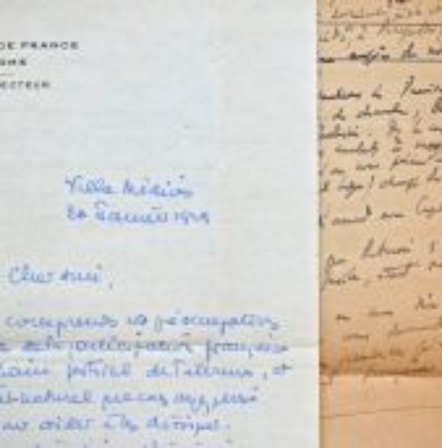 Une lettre collée en coin aux deux brouillons de Martelli. En-têtes de l'Académie de France à Rome.