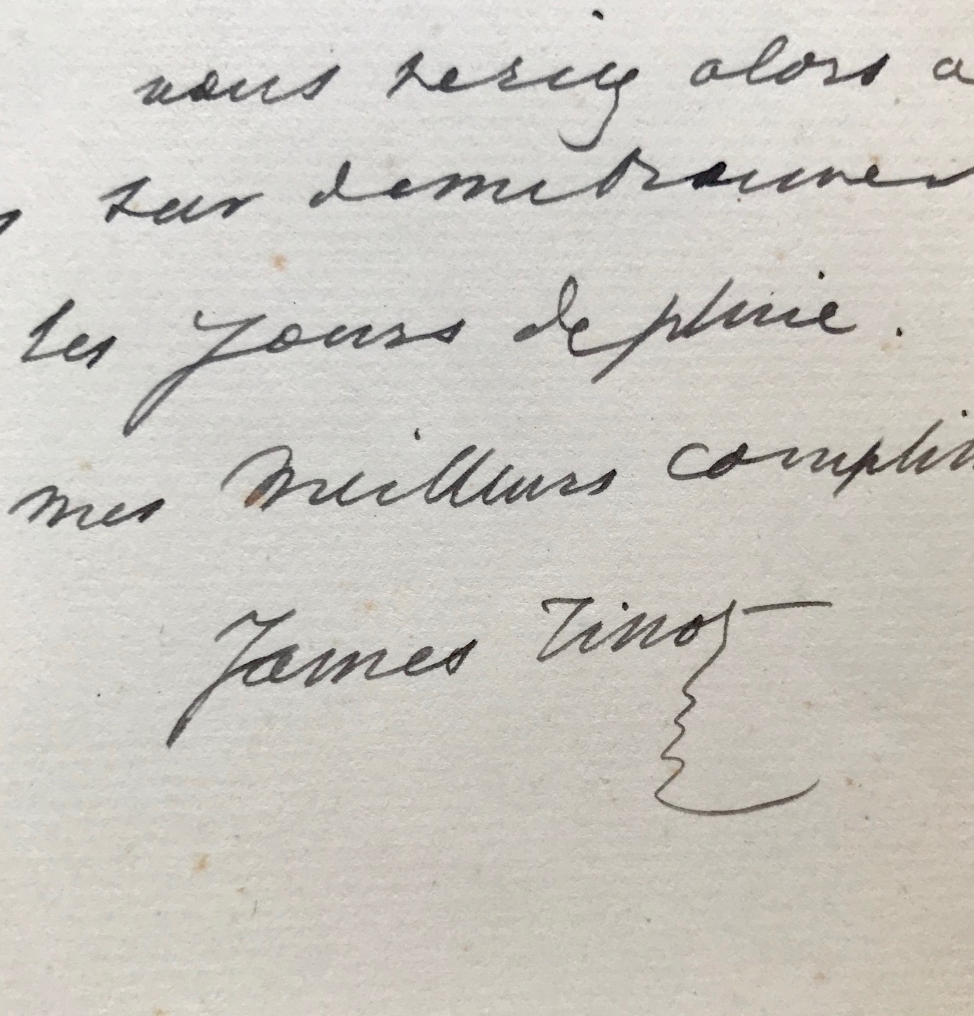 James Tissot informe son correspondant de son emploi du temps du dimanche : le matin il sort et l'après-midi il est occupé. Pour le trouver libre, il faut venir "n'importe quel jour sauf les samedi vers les quatorze heure et demi. Vous seriez alors à peu près sûr de me trouver surtout les jours de pluie".