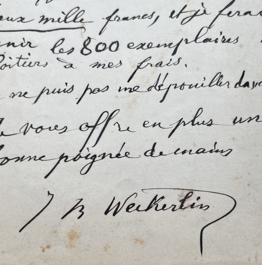 Jean-Baptiste Weckerlin négocie le prix d’un ouvrage avec Garnier