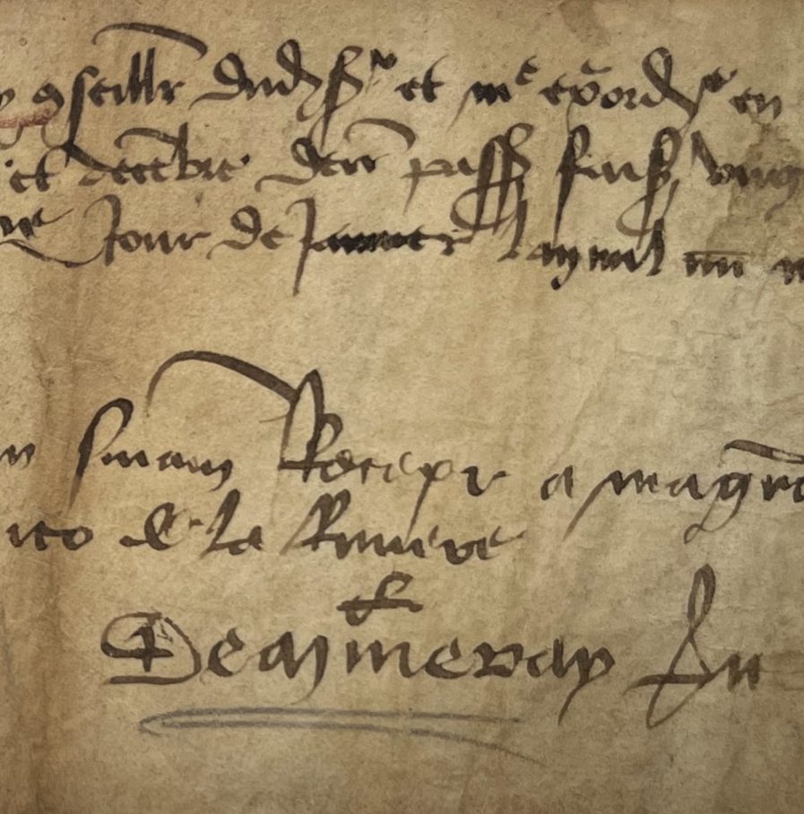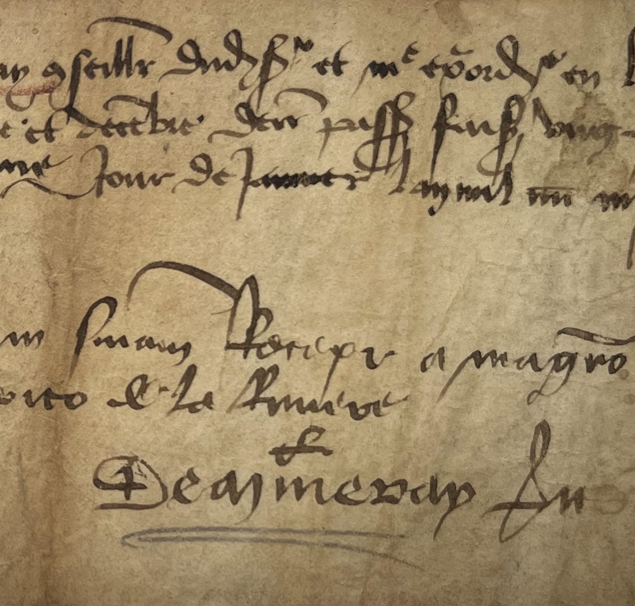 Document signé par Jehan de Mineray avec deux lignes autographes + une autre signature "Le Guignetier".