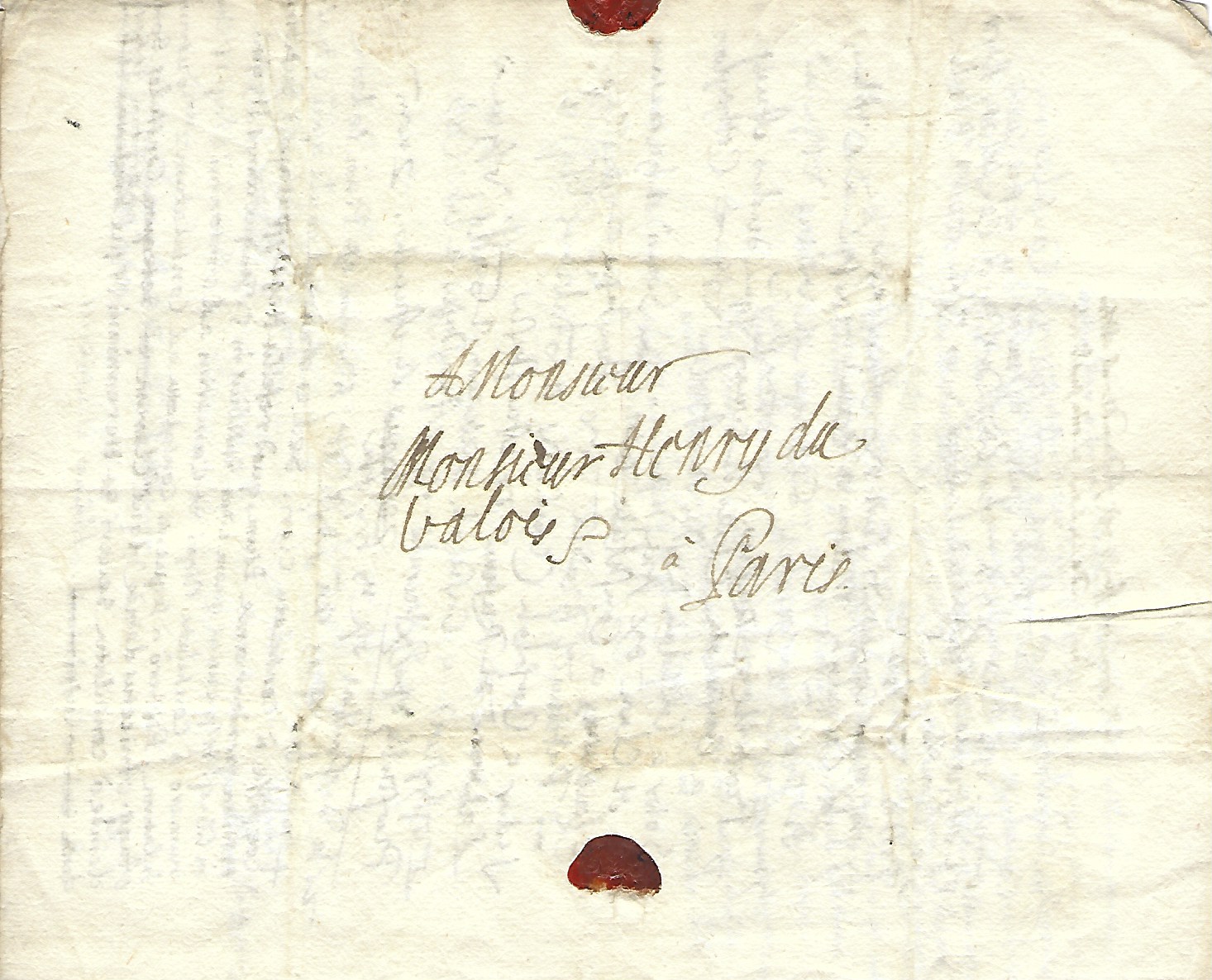 Johann Albrecht Portner (Theuern, 1628/1687)Rare lettre de l'érudit allemand Johann Albrecht Portner à Henry de Valois, évoquant la mort du père Pétau, survenue le 11 décembre 1652. Ecrite en latin, dont voici la traduction : "Votre cadeau m'a fait plaisir. Votre lettre m'a été très agréable. L'un était le fait de l'érudition, l'autre celui de la bienveillance. Vous vous êtes montré du même coup généreux et bon. Certes les Mânes de l'homme illustre dont vous avez célébré la mémoire, méritaient - après la récente disparition de Rigault - de ne pas rester sans un chantre de ses mérites envers la postérité. Cette charge vous a incombé par le choix de la Sagesse elle-même. Car depuis que vous avez fait ce grand éloge funè-bre de Pierre Dupuy, les Muses ont voulu que leur coryphée n'ait à l'avenir d'autre héraut. Notre époque admire leur jugement, l'avenir le vénèrera. Ceux qui sont nés trop tard ou trop loin pour pouvoir avoir sous les yeux l'excellence de ses vertus, devront à votre travail, à votre exactitude, d'avoir ces exemples à imiter. Il agit pour l'Humanité celui qui dispense équitablement l'honneur sur les bonnes actions et l'opprobre sur les mauvaises. ... Le discours par lequel vous avez l'éloge du P. Pétau (un grand homme, salué par tous les érudits) montre bien que vous vous êtes acquitté envers ce mort au-delà de ce qu'il vous a confié de son vivant. Car il vous a donné ce que vous étiez ca-pable de lui rendre. Mais ce que vous lui avez accordé ne peut plus être compensé de sa part. Aussi dans l'oubli de lui-même et de nous, jouissant d'un repos consolateur au milieu des Anges il vous a légué un immense trésor, l'association à sa gloire et en a rendu la postérité redevable, au point que on ne peut désormais se souvenir de Pétau sans Valois, ni de Valois sans Pétau.