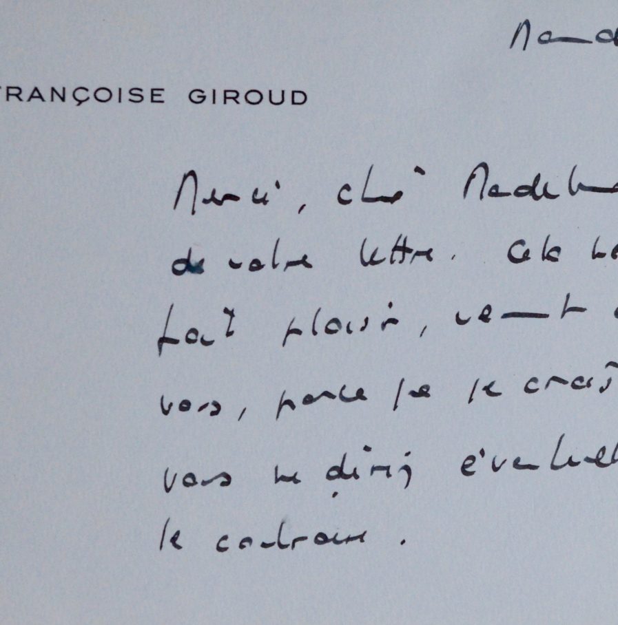 Jolie carte de Françoise Giroud, adressée à Madeleine Chapsal