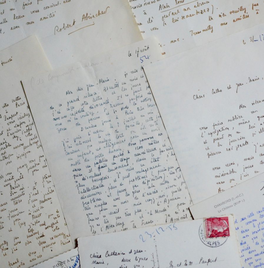 Robert Abirached (Beyrouth, 1930/)Belle et amusante correspondance amicale composée de cinq lettres et trois cartes postales de Robert Abirached, adressées à son ami, l'écrivain catholique Jean-Marie Paupert.