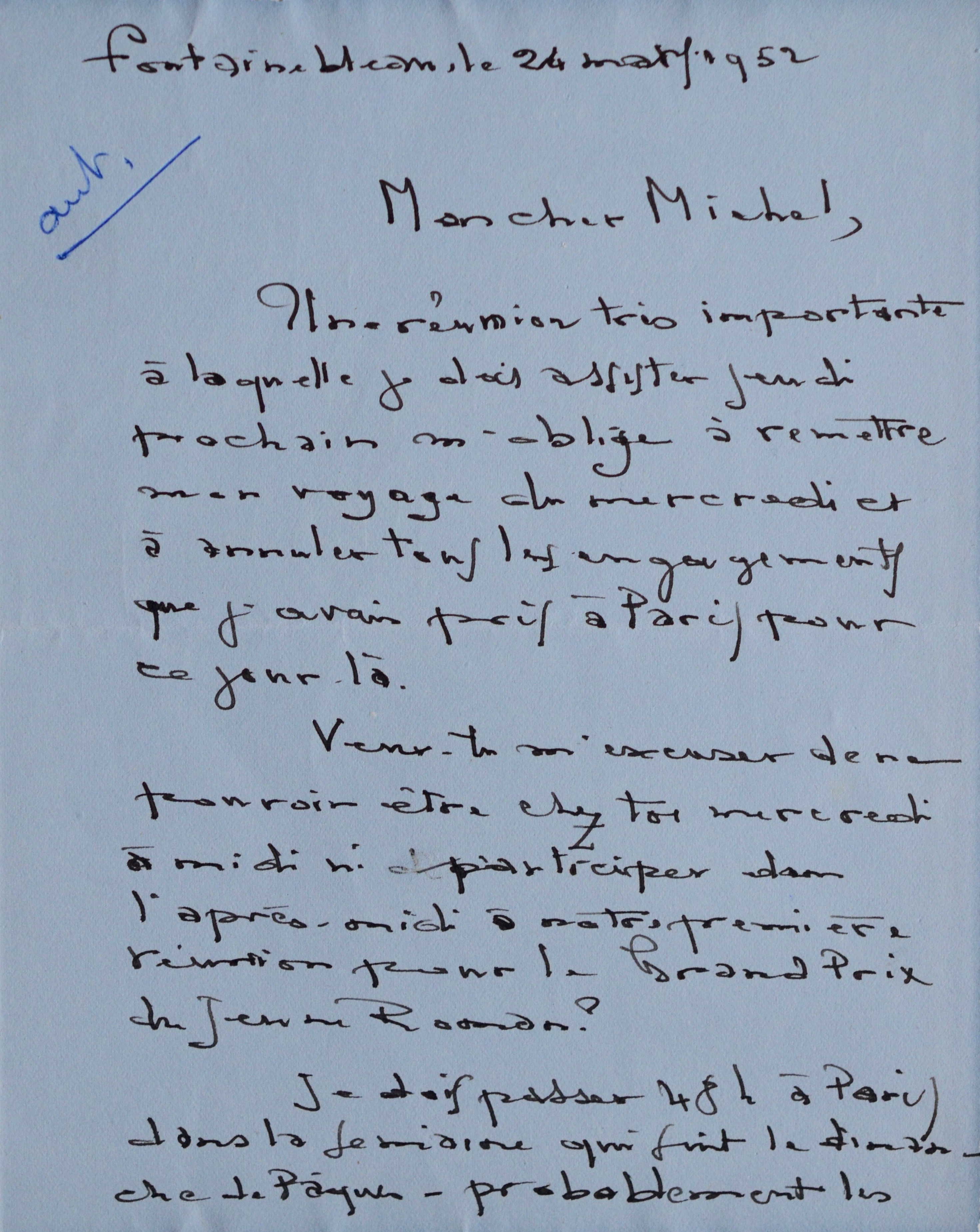 Joseph Zobel doit annuler tous ses engagements à cause d'une "réunion très importante". Il fausse donc compagnie à Michel de Saint-Pierre pour un déjeuner qu'ils avaient programmé et la "première réunion pour le Grand prix du Jeune Roman".