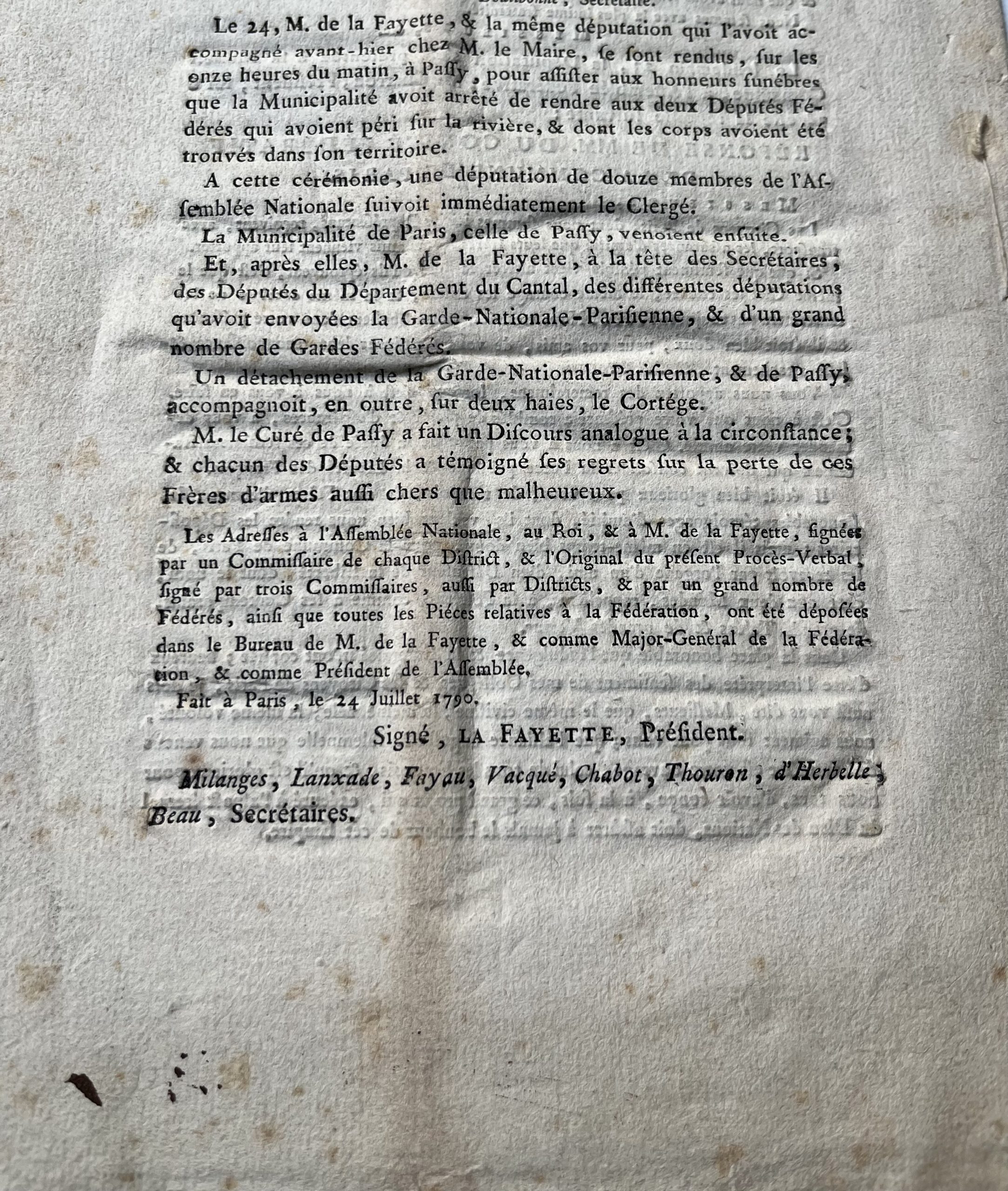 Juillet 1790 : compte-rendu des séances de la Confédération, présidées par Lafayette