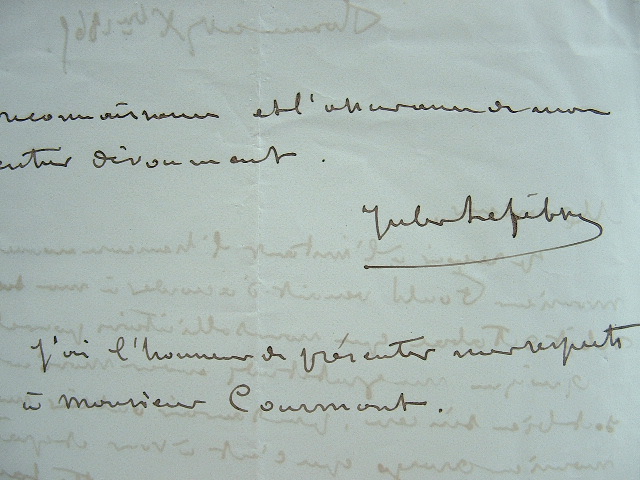 De Florence, Jules Lefebvre apprend que les démarches entreprises pour sa soeur ont abouti, et il remercie chaleureusement Arago pour son entremise. «Mon frère a dû vous dire que ma copie touchait à sa fin [Cénacolo di San Salvi, fresque d'André del Sarte (9 mètres sur 8 mètres)]. J'espère pouvoir retourner à Rome vers le 20 janvier. Je l'emporterai avec moi, car M. Schnetz paraît y tenir beaucoup. Du reste, je ne serai pas fâché non plus, de faire voir là bas une oeuvre de cette importance, qu'on connaît à peine, même ici. Je vais rentrer à mon atelier l'esprit tranquille, chose précieuse pour un artiste [...]».