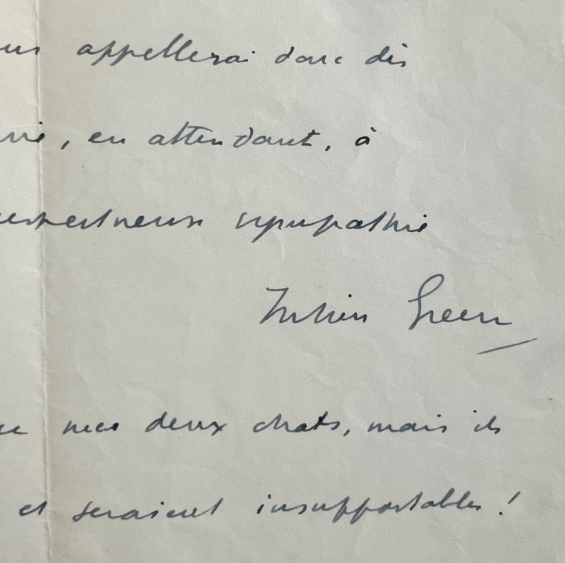 Julien Green assure Colette de sa longue et constante admiration.