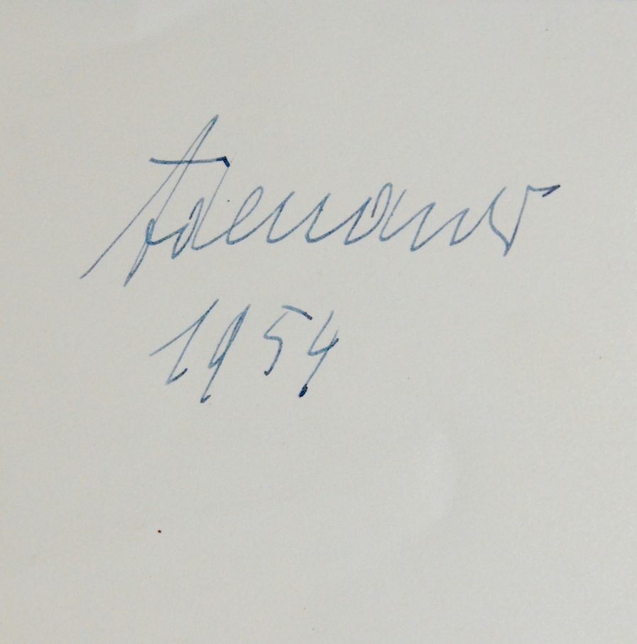 Au dos, signature autographe avec date du chancelier Konrad Adenauer.