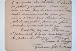 L'anthropologue Joseph de Baye réclame à Louis Gastine ses «notes manuscrites sur les Ostiaks». Gastine avait refusé pour sa Revue générale internationale un article illustré de Baye sur cette ethnie du Nord de la Russie, désormais connue sous le nom des Khantys : il avait renvoyé les photographies sans le texte. Le Baron de Baye avait en effet effectué un voyage chez les Khantys quelques années auparavant et en avait rendu compte au cours des séances de la Société de géographie.