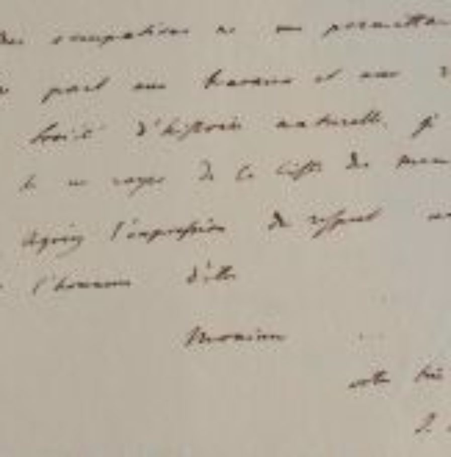 Dans ce billet, Jules Mohl soumet à Jean Baptiste Antoine Guillemin, secrétaire, sa démission de la Société d'Histoire naturelle : «Mes occupations ne me permettent pas de prendre part aux travaux et aux réunions», précise-t-il. [La Société d'Histoire naturelle, née de la Société Linnéenne en 1790, disparaîtra en 1834].
