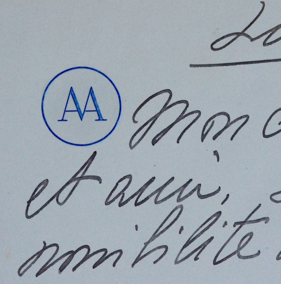 Encre noire sur papier fort. Chiffre circulaire imprimé en tête "AA".