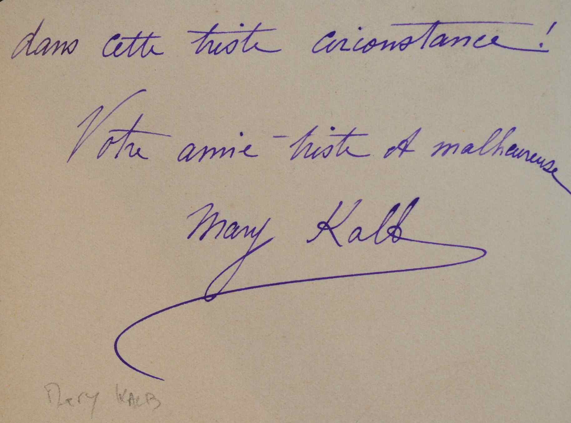 Dans ce billet, la comédienne Mary Kalb remercie chaleureusement un ami pour ses condoléances. Elle dit aussi sa grande peine.