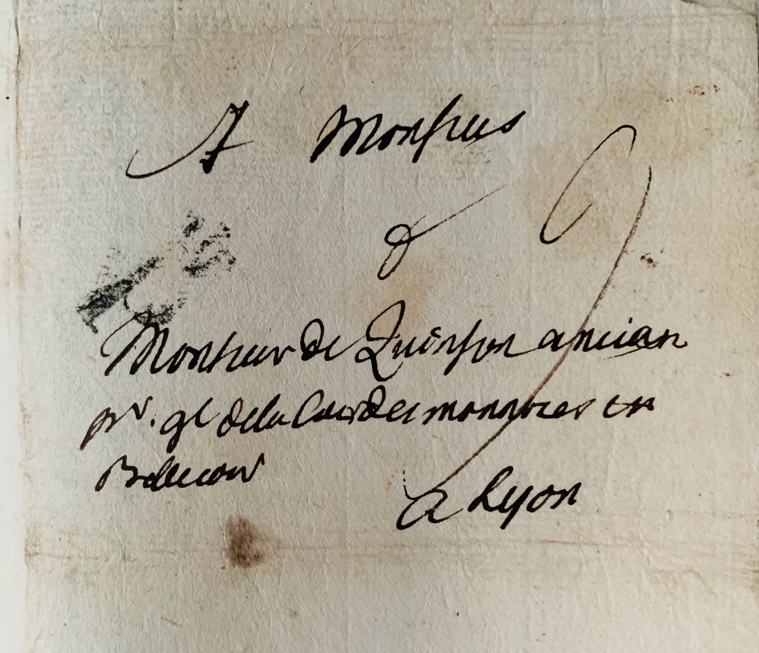 Destinataire : Monsieur de Quinson, ancien procureur général de la Cour des monnaies à Lyon