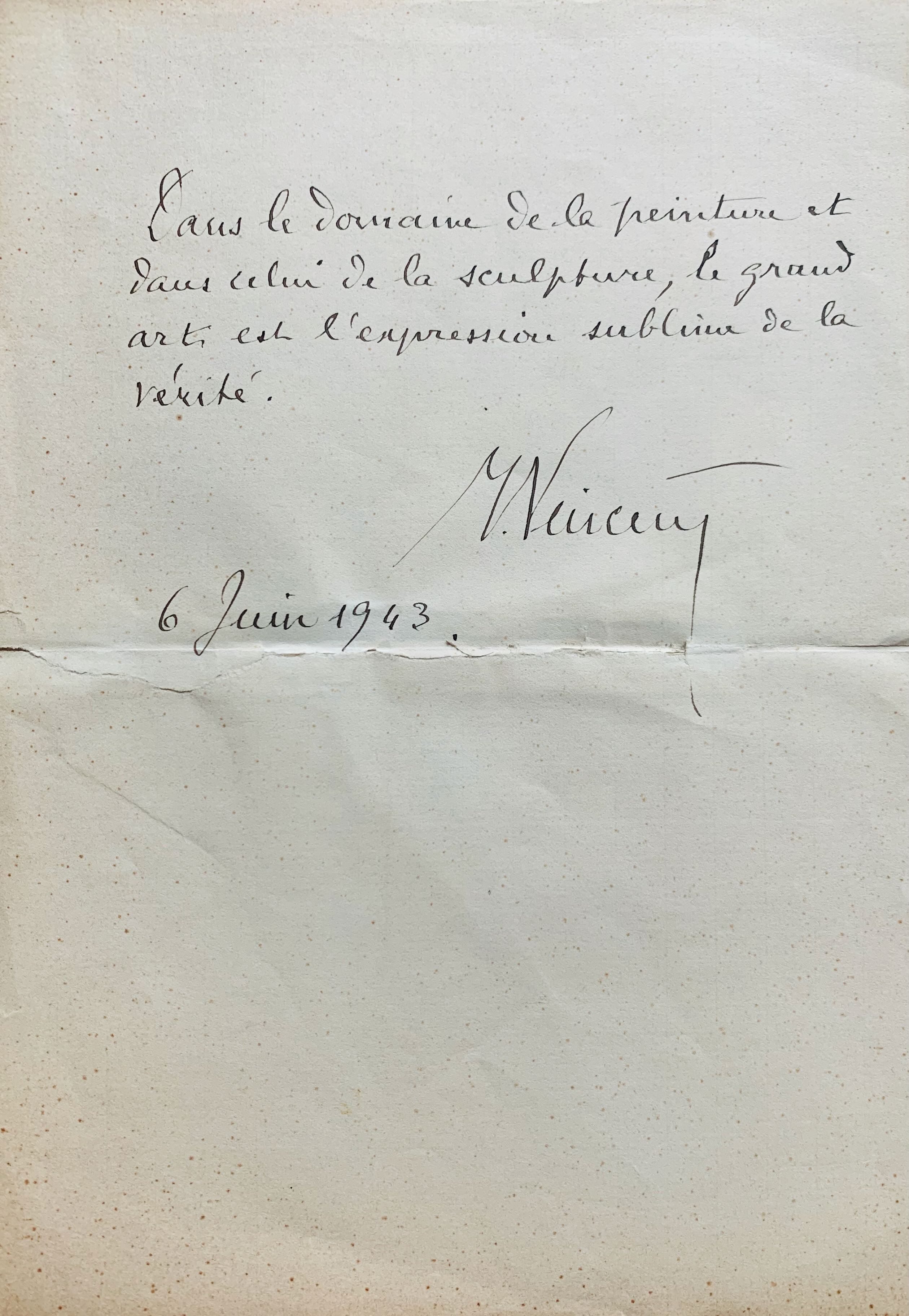 "Dans le domaine de la peinture et dans celui de la sculpture, le grand art est l'expression sublime de la vérité. H. Vincent"