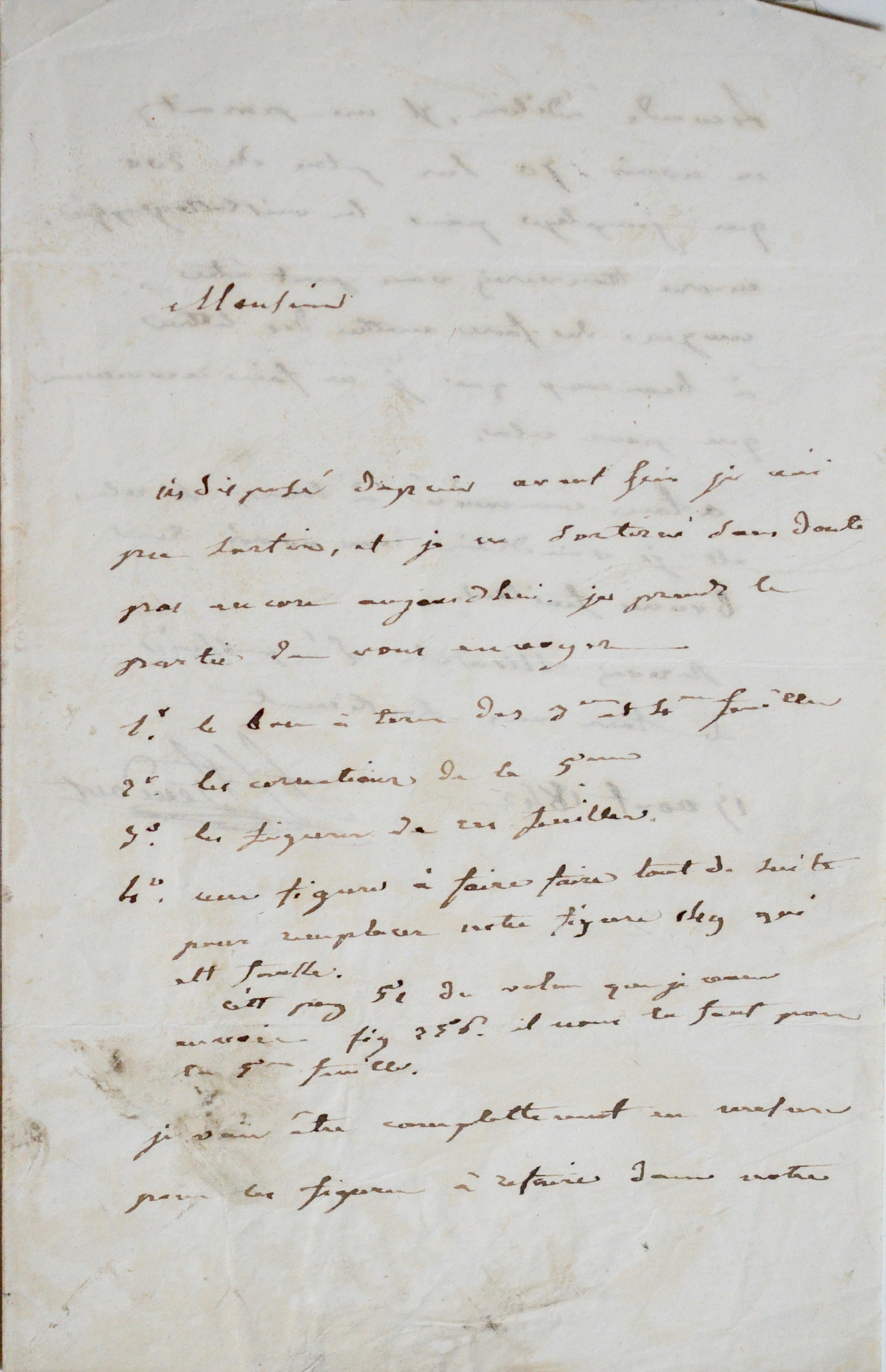Il envoie le bon à tirer des 3e et 4e feuilles, les corrections de la 5e, les différentes figures, ainsi que "la figure à faire faire tout de suite pour remplacer notre figure 149 qui est fausse. C’est pag. 51 du volume que je vous envoie fig. 256. Il nous la faut pour la 5e feuille […]". Il réclame les "bonnes feuilles" pour l'édition.