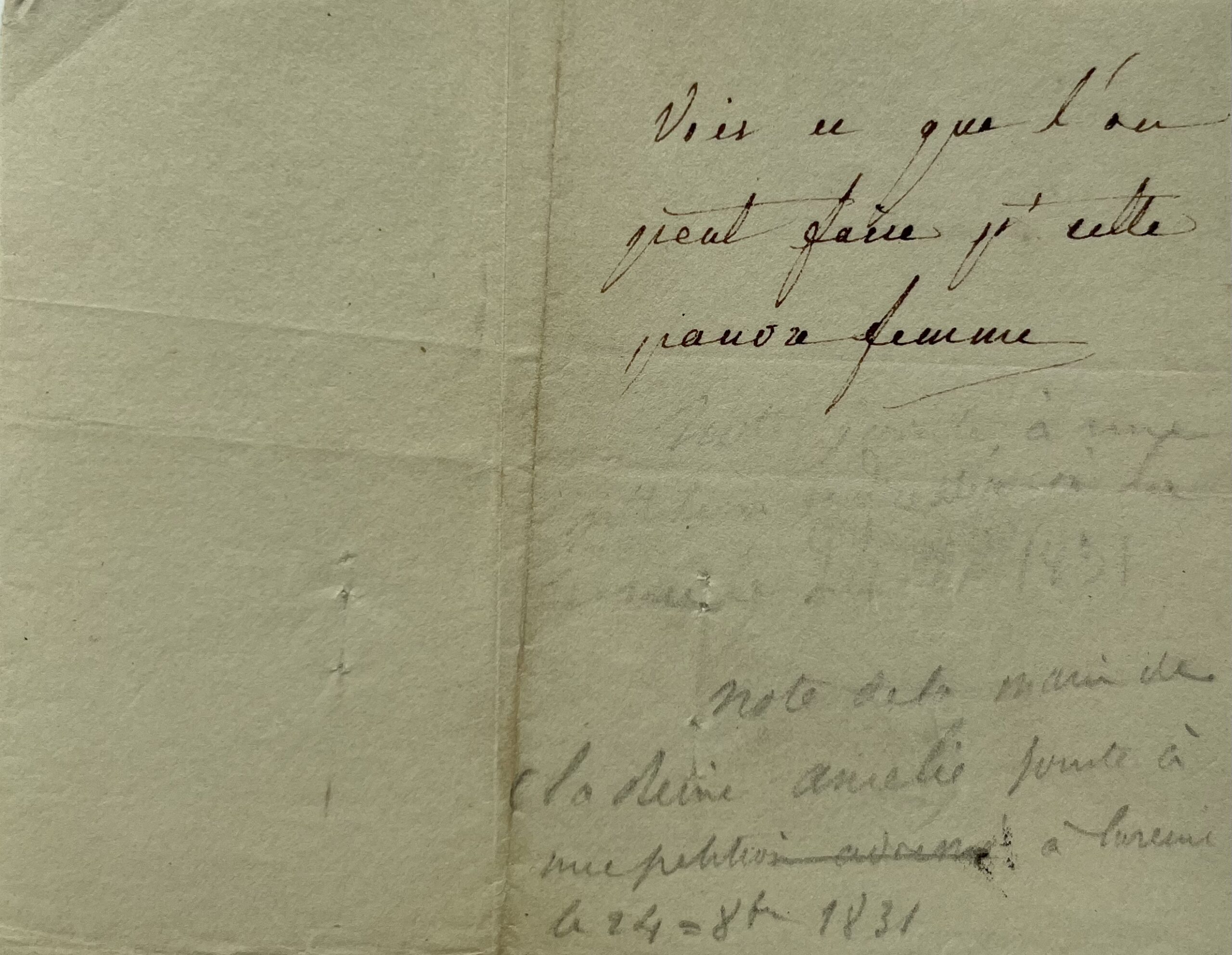 Une note, au crayon, précise que ce billet était joint à une pétition adressé à la reine le 24 octobre 1831.