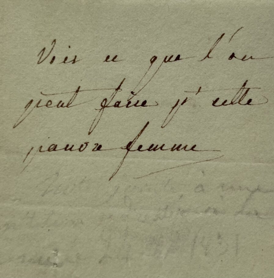 Note anciennement épinglée à une pétition, de la main de la reine Marie-Amélie, non signée : "Voir ce que l'on peut faire pr cette pauvre femme".