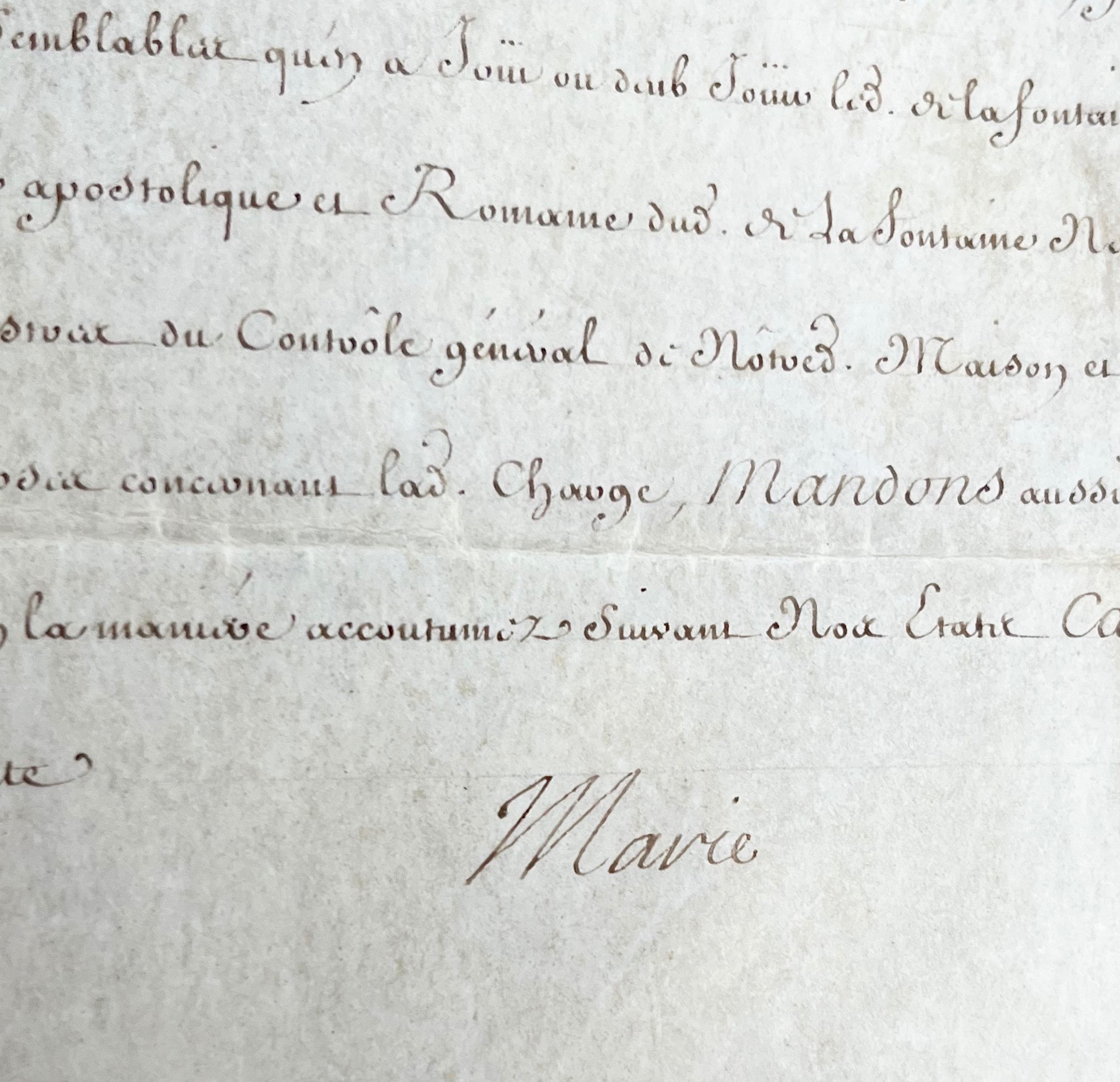 Marie Leszczynska (Trzebnica, 1703/1768)Parchemin signée "Marie", de la main de la reine de France, Marie Leszczynska.