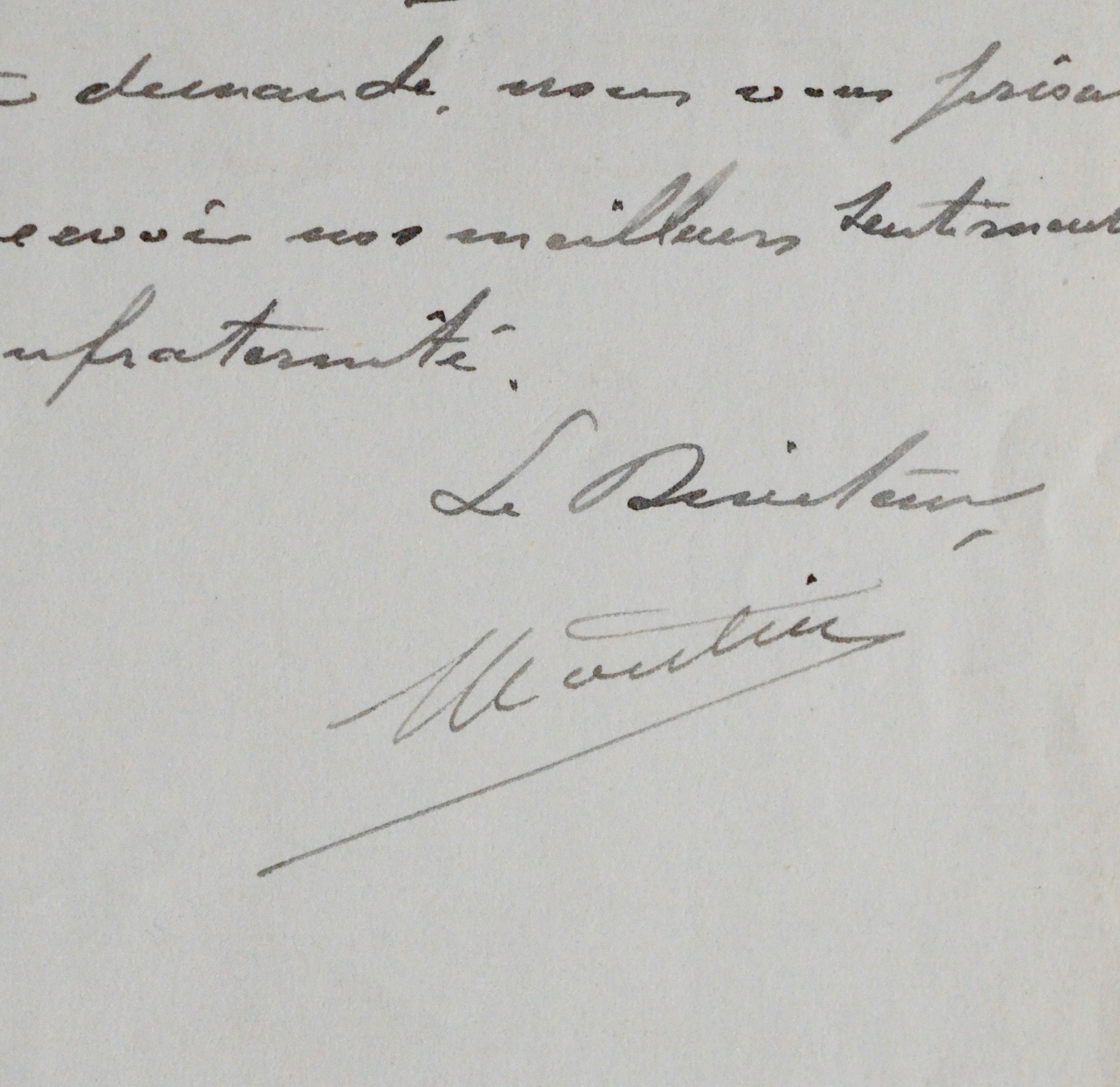 Lettre signée du médecin, magnétiseur et hypnotiseur Lucien Moutin.