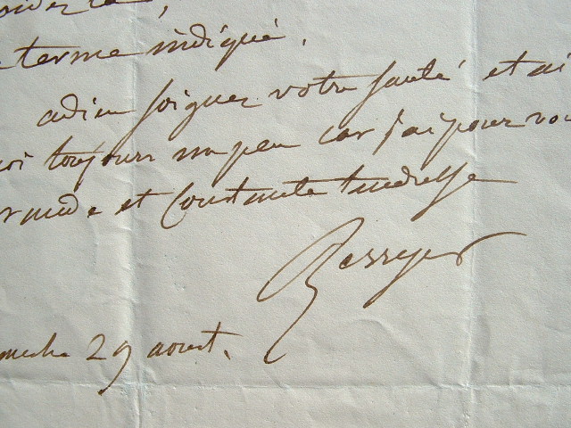 «Mon bon ami. Je pars avec le chagrin de votre résistance à venir prendre auprès de moi un peu de temps de retraite et de repos». Il lui transmet une lettre de Paul de Saint-Victor. «Adieu, soignez votre santé et aimez moi toujours un peu car j'ai pour vous grande et constante tendresse».
