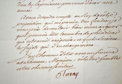 Joseph-Marie Terray (Boën-sur-Lignon, 1715/1778)Intéressante lettre sur la valorisation du varech et du goémon. Ayant reçu l'avis de l'Académie des sciences sur un mémoire qu'il lui avais transmis, il souhaite avoir quelques précisions. "Vous pensez que pour acquérir des connaissances certaines sur ces différentes matières, il est nécessaire d'envoyer sur les côtes dans plusieurs provinces du Royaume quelques naturalistes physiciens dont les expériences pourront durer une année. Avant de rendre compte au Roy de votre proposition qui me paroit très fondée, je vous prie de vouloir bien me marquer quel pourroit être le nombre de physiciens que ce travail exigeroit et quels seroient les sujets qui s'en chargeroient".