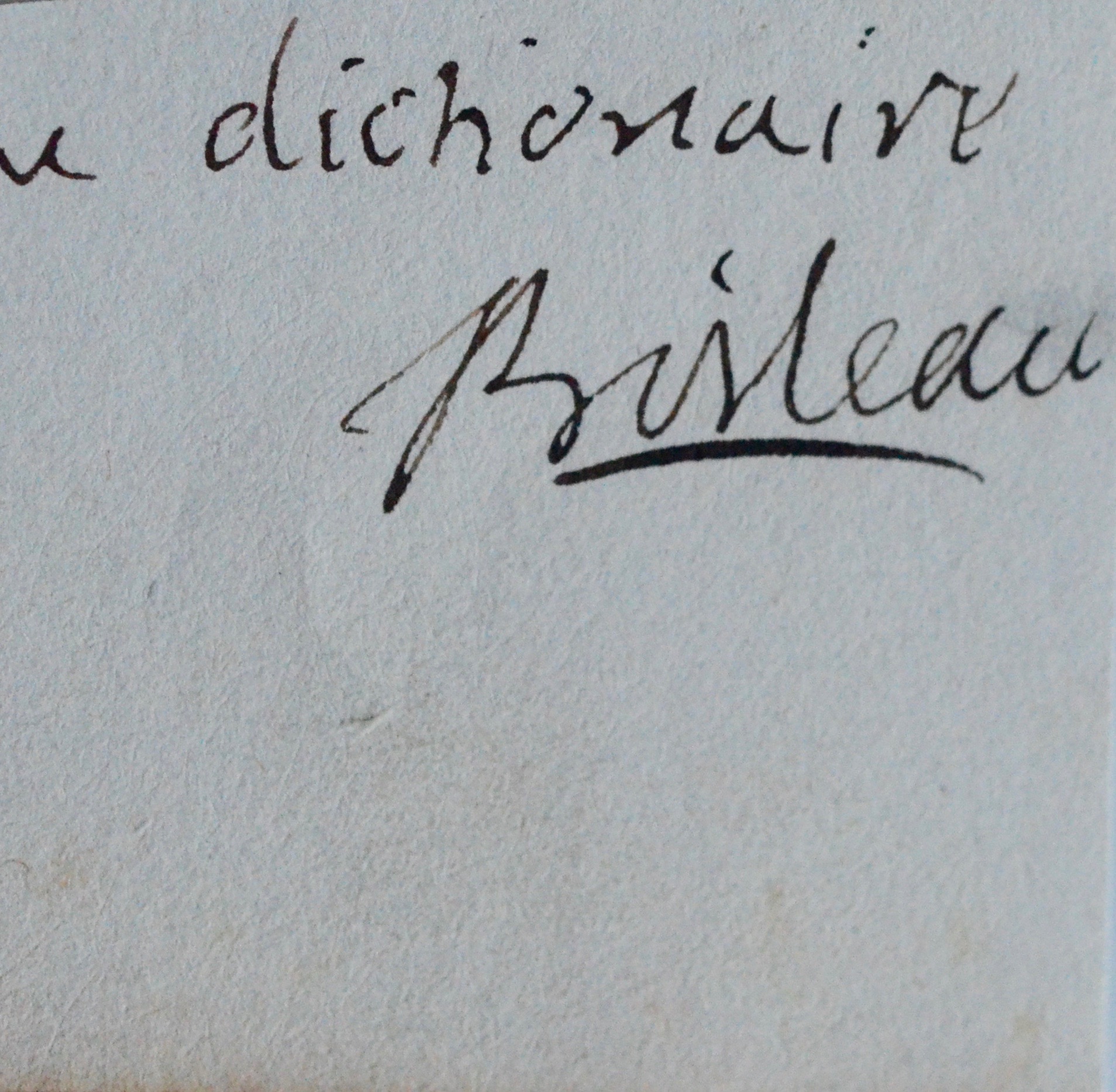 "Les catalogues ne contiennent qu’une lettre de Charles Boileau, n° 102 du catalogue de Refuge et une pièce signée, n° 23 du catalogue de la vente faite par Étienne Charavay, 13 décembre 1884". (R. Bonnet, Isographie de l’Académie française, Paris, Charavay, 1907, p. 32).