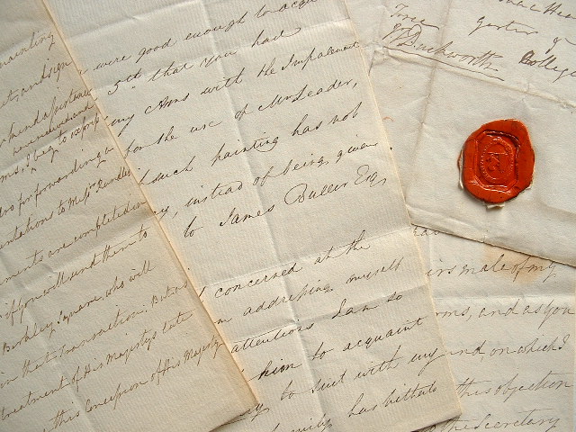 3 lettres de l'amiral Duckworth, relatives à la délivrance et à la peinture de ses armoiries.
