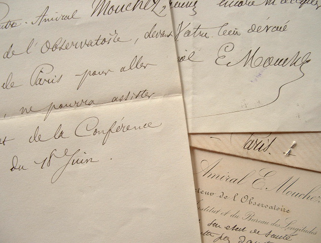En-têtes de l'observatoire de Paris. Enveloppes jointes. Avec une carte de visite autographe au même.