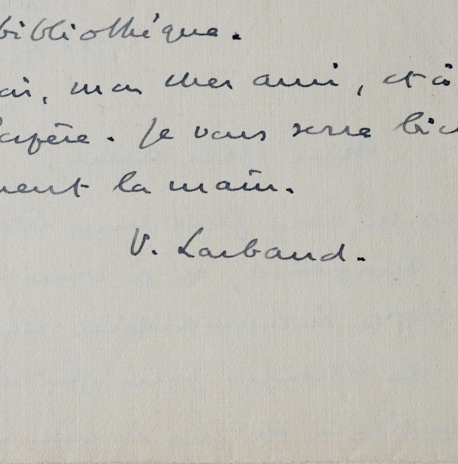 Lettre de Valéry Larbaud adressée à un confrère :