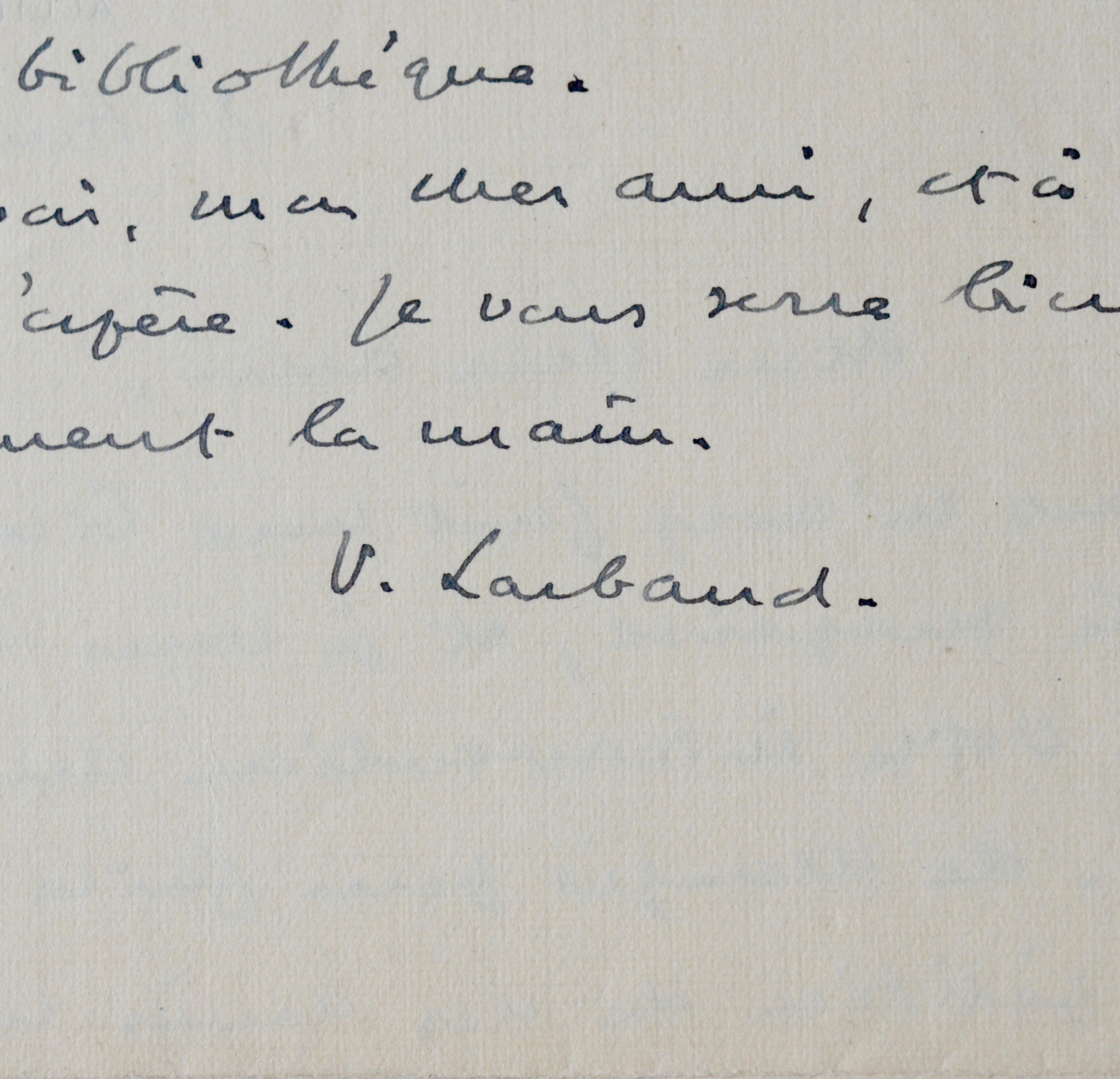 Larbaud remercie un confrère pour l’aboutissement d’une pétition