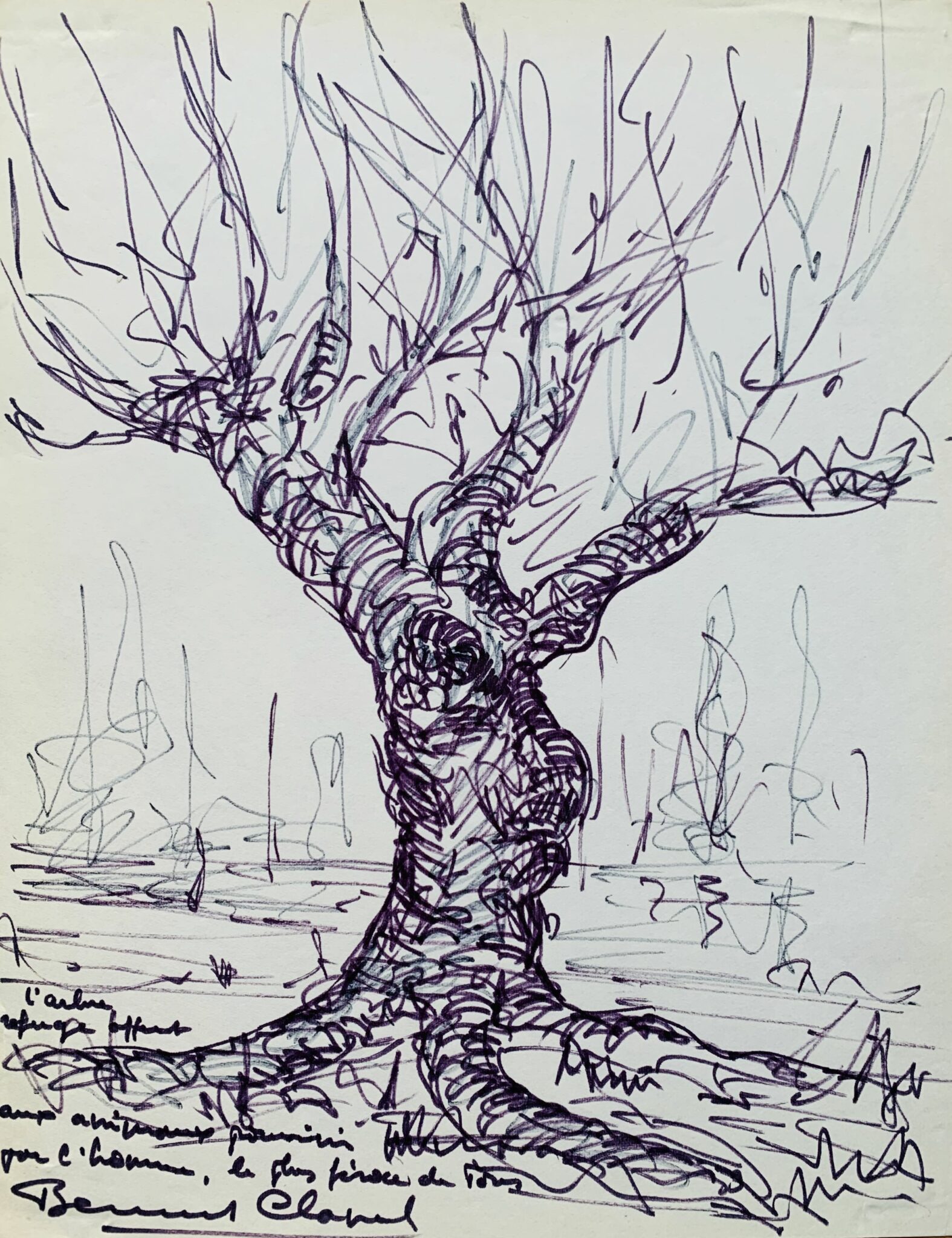 L’arbre refuge aux animaux : dessin original de Bernard Clavel