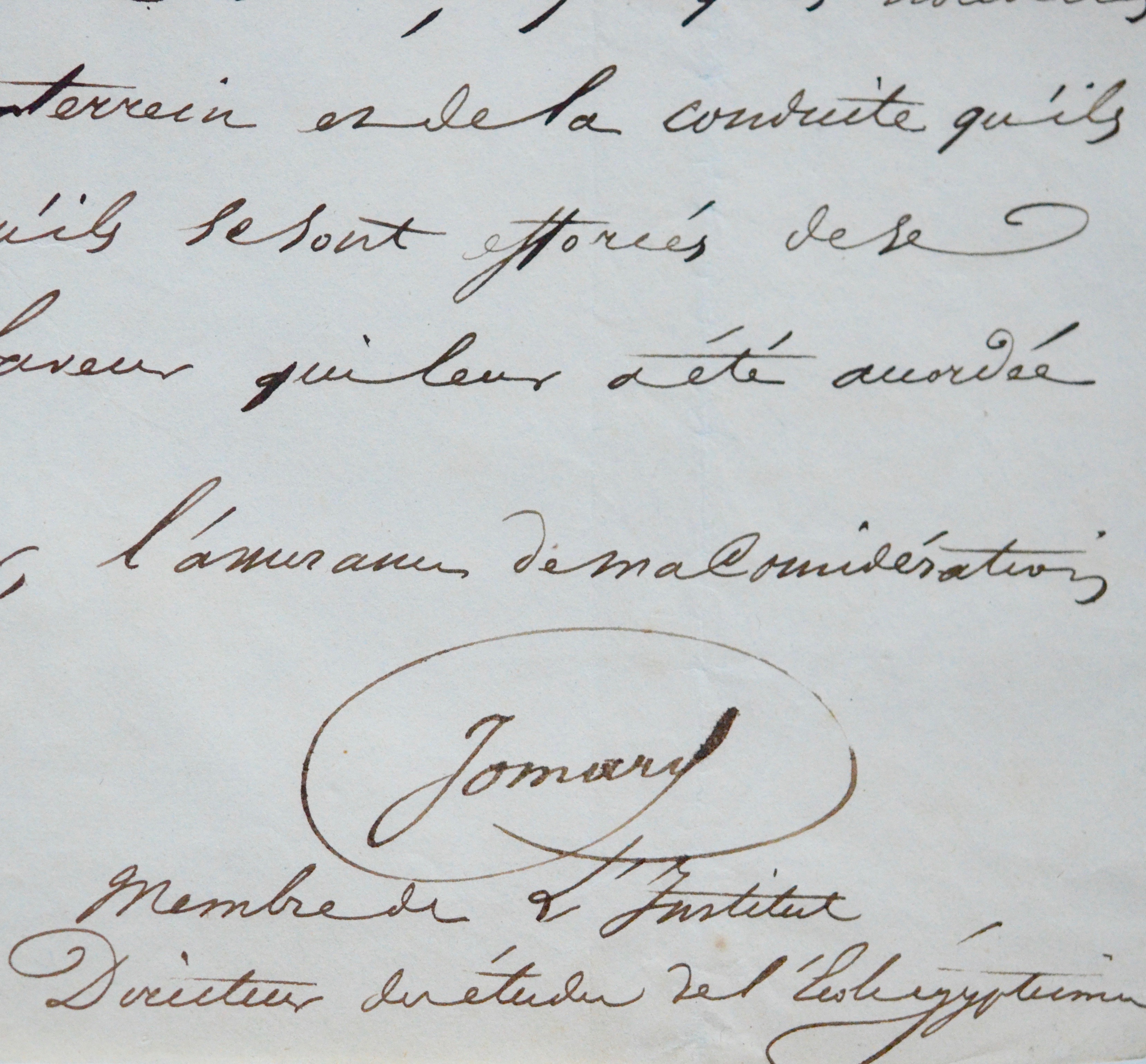 Edme-François Jomard (Versailles, 1777/1862)Égyptologue, géographe, il est membre de l'Académie des Inscriptions et Belles-Lettres et créateur du département des Cartes et plans à la Bibliothèque nationale.