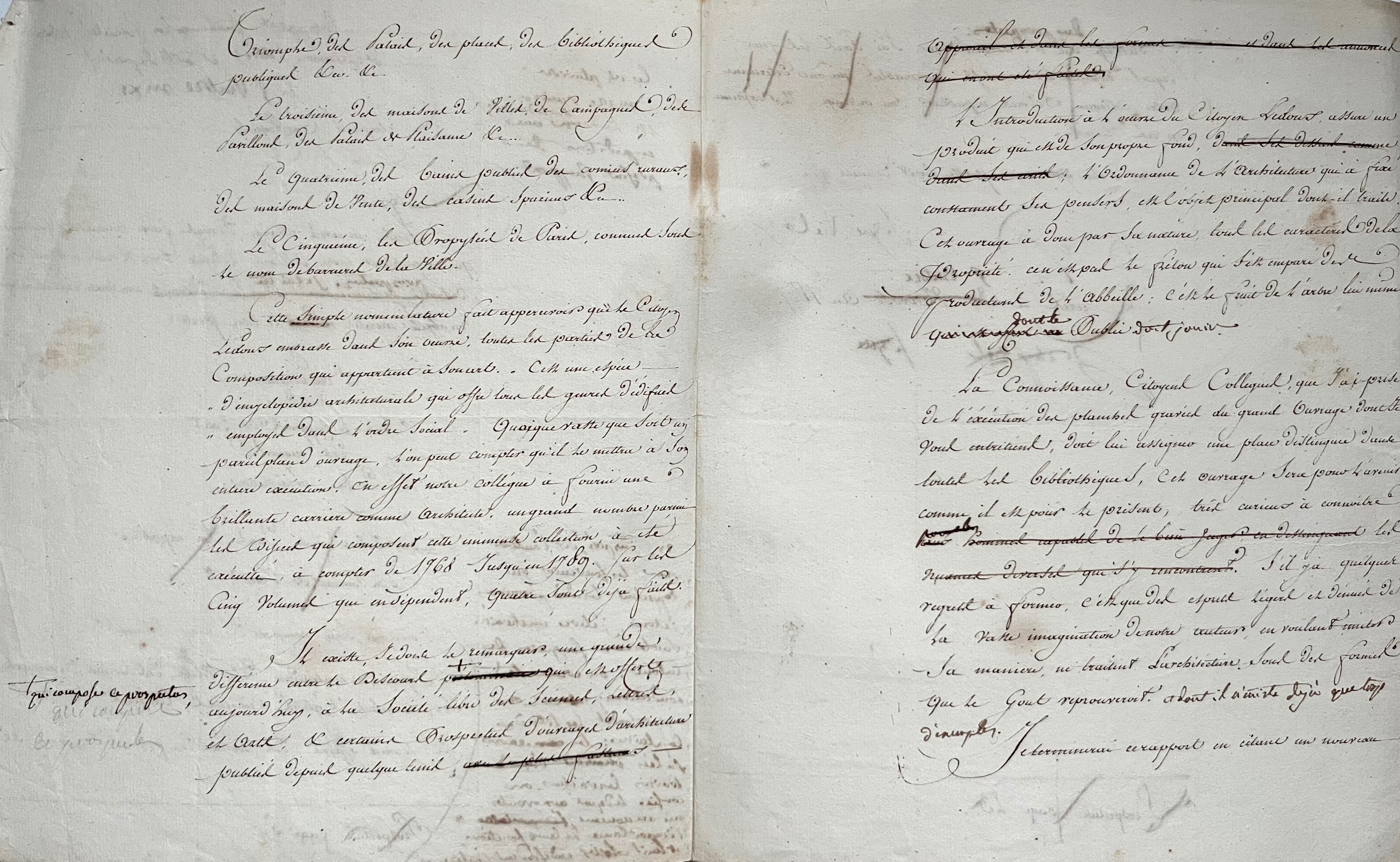 Charles-François Viel (Paris, 1745/1819)Manuscrit avec ratures, corrections et ajouts autographes de Charles-François Viel, architecte et théoricien de l’architecture.