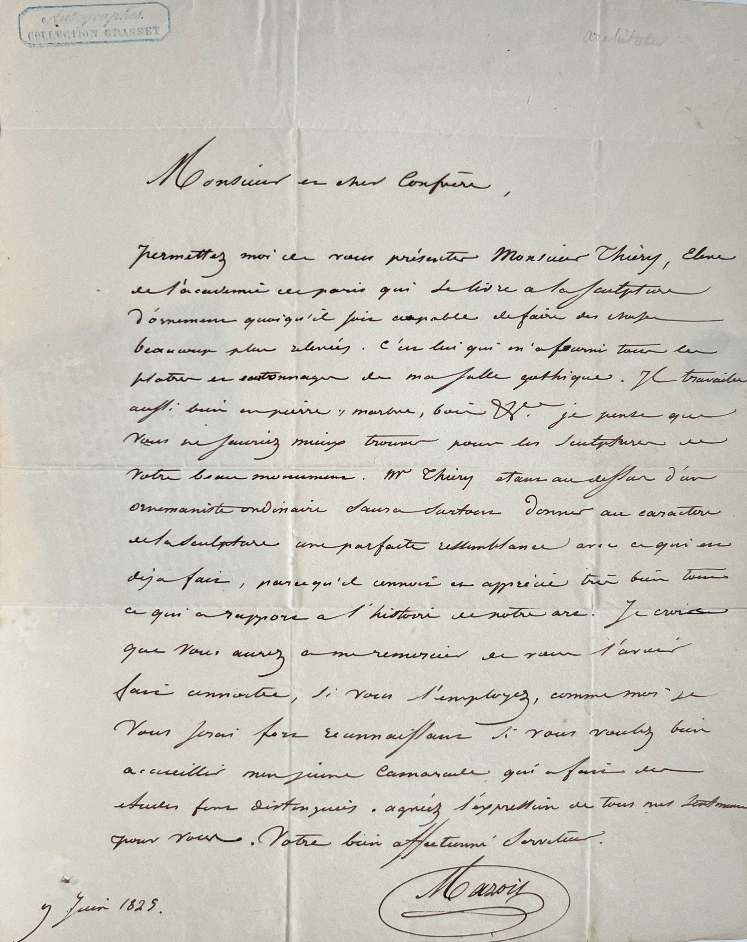 L’architecte François Mazois recommande un sculpteur à son confrère Nicolas Serrurier